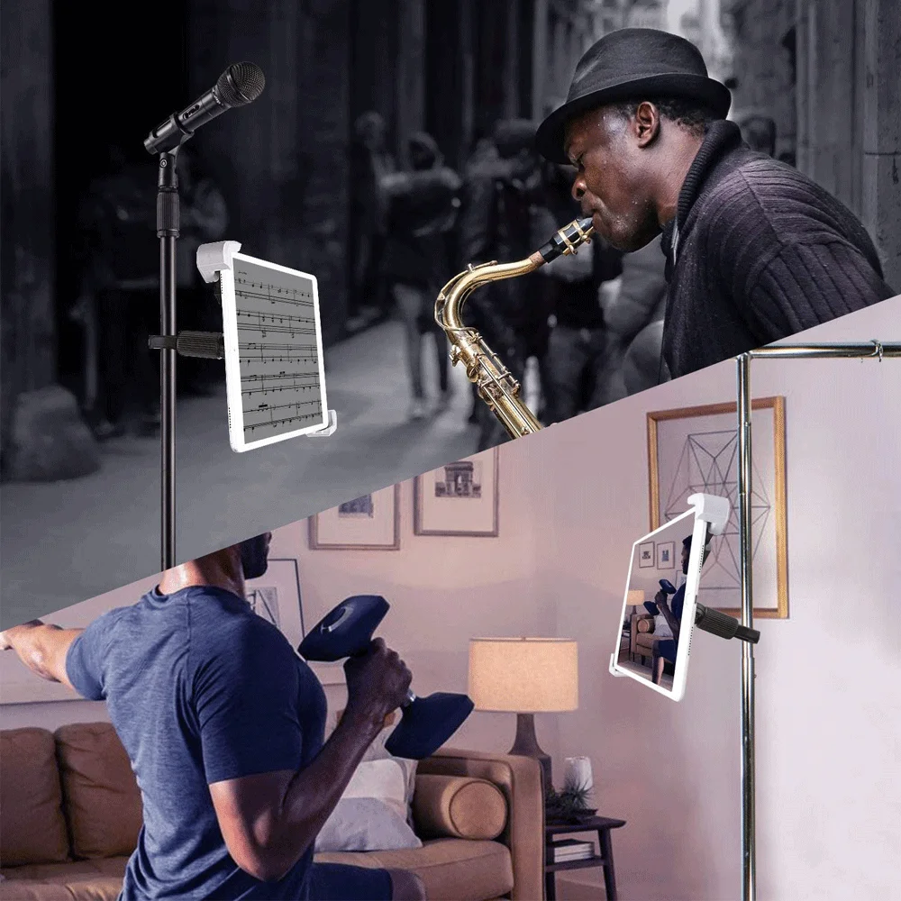 3.Soporte seguro para micrófono/música que se adapta a una tableta