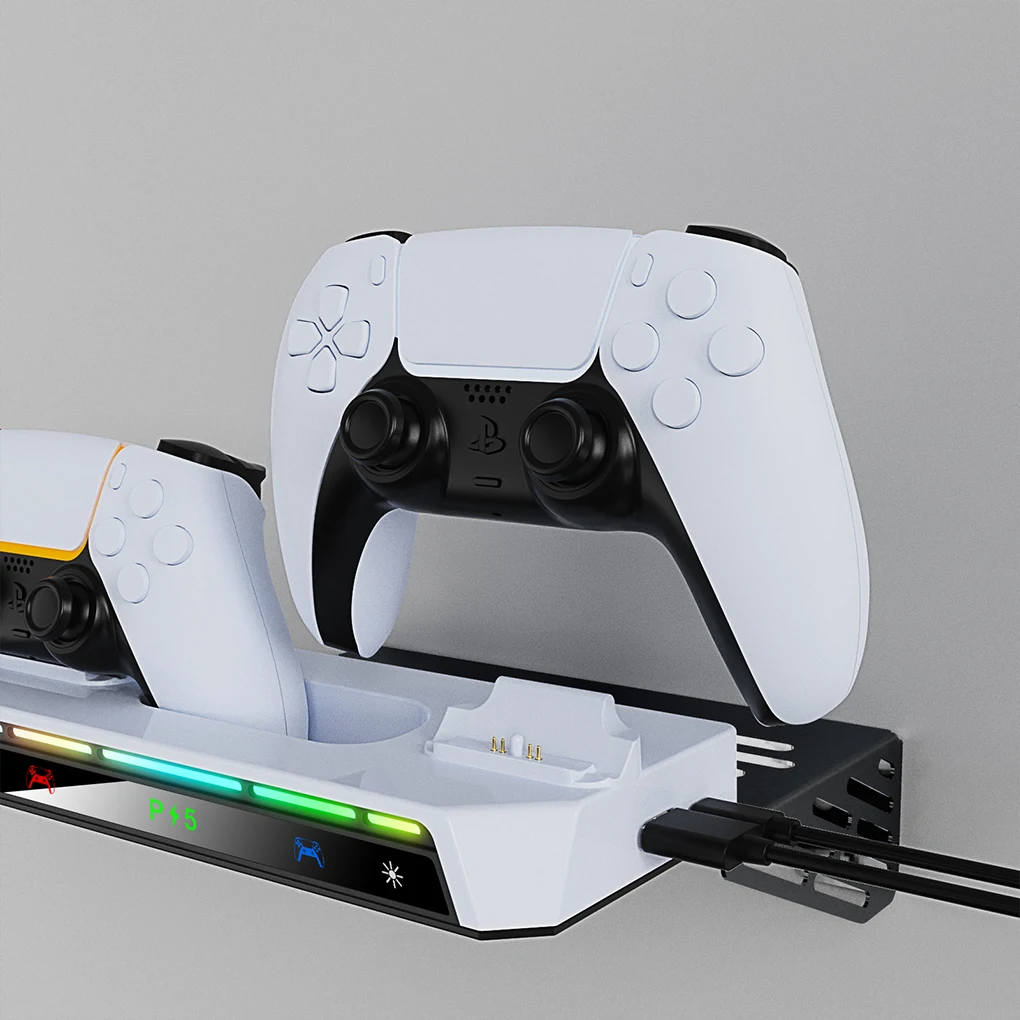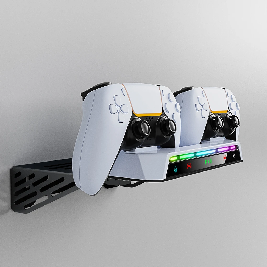 Práctico soporte de cargador de pared de metal: mantenga sus controladores PS5/PS5 Slim cargados y organizados con este soporte de pared de hierro, que cuenta con una ventilación para mejorar la disipación del calor.