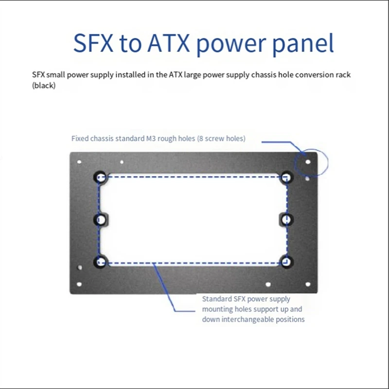 Fuente de alimentación ATX al soporte de fuente de alimentación SFX Fuente de alimentación SFX a fuente de alimentación ATX Marco de conversión de orificio de chasis fijo Durable