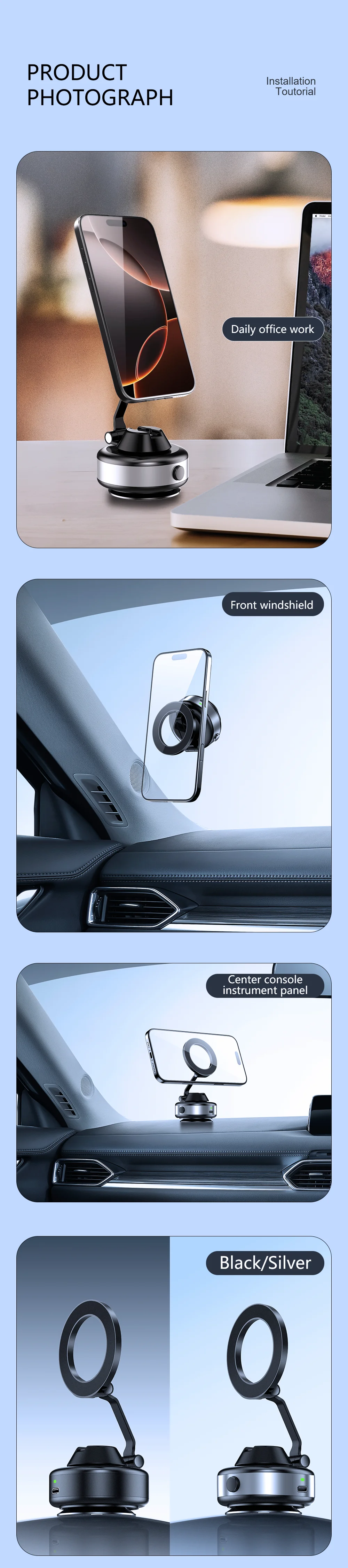 Soporte giratorio para coche de 360 grados, soporte de adsorción completamente automático, cargador inalámbrico magnético fuerte, Universal para todos los vehículos