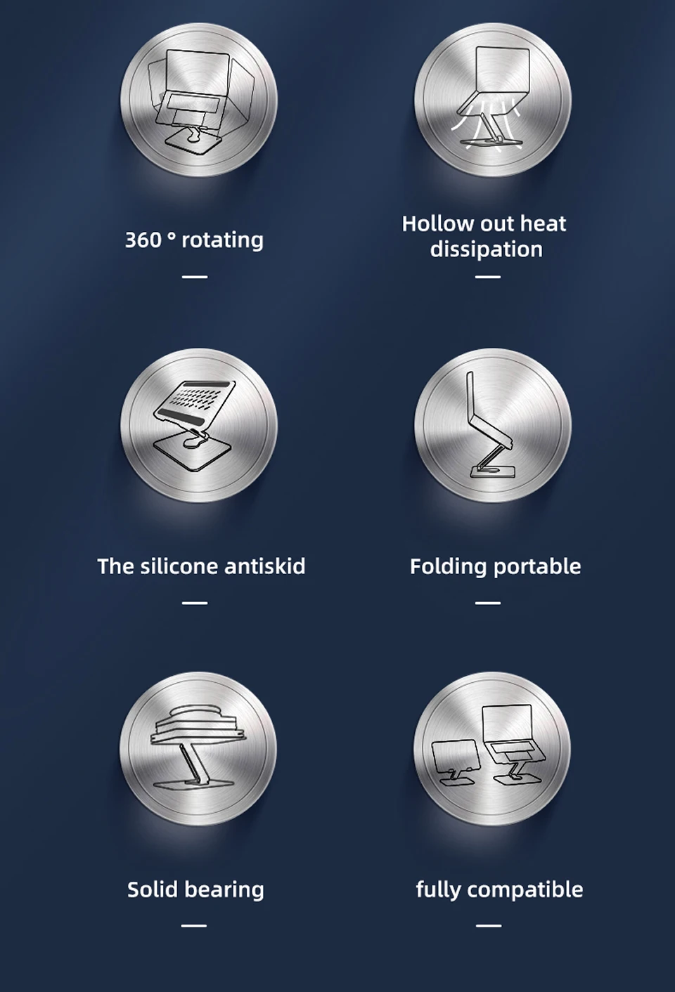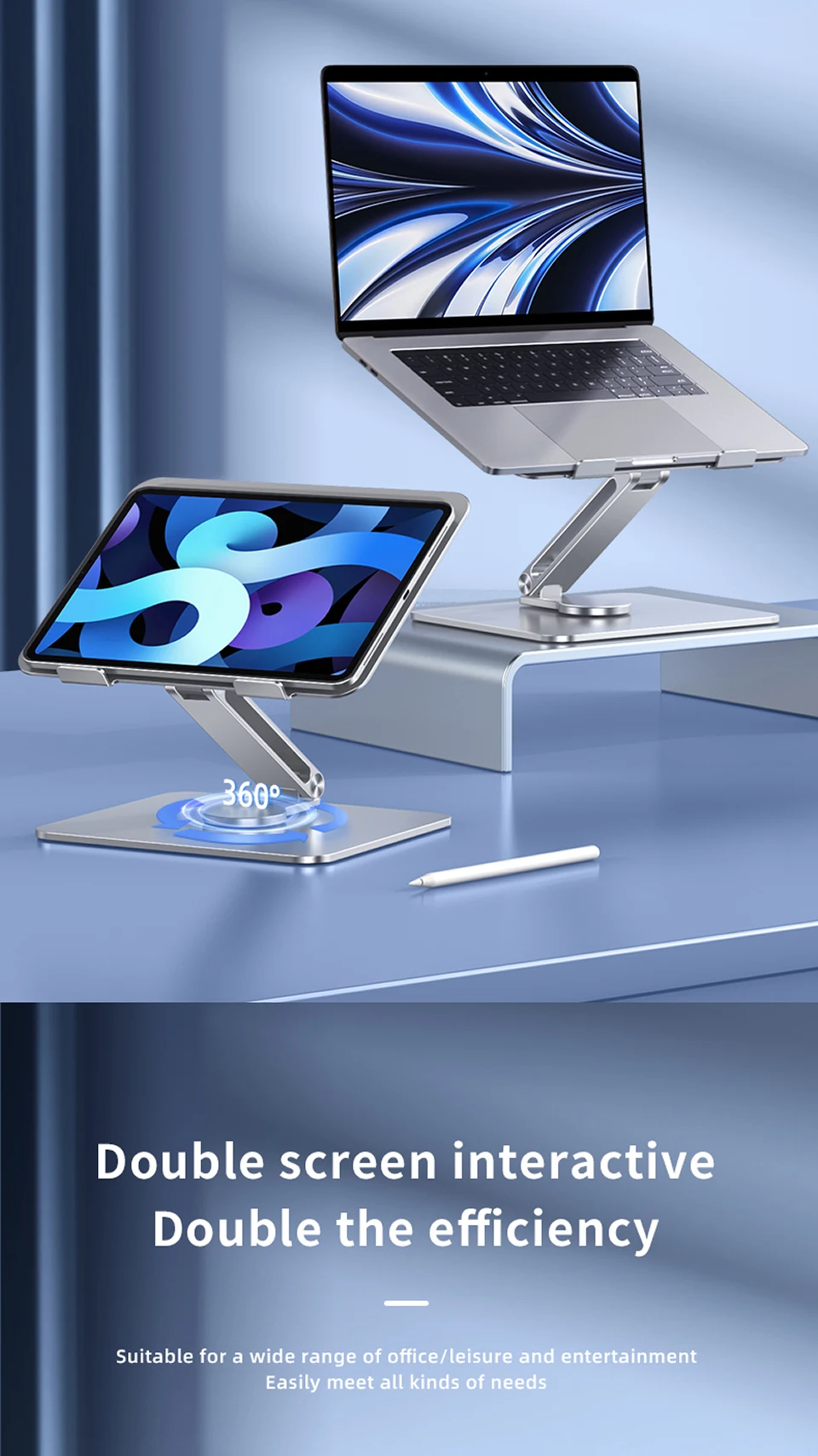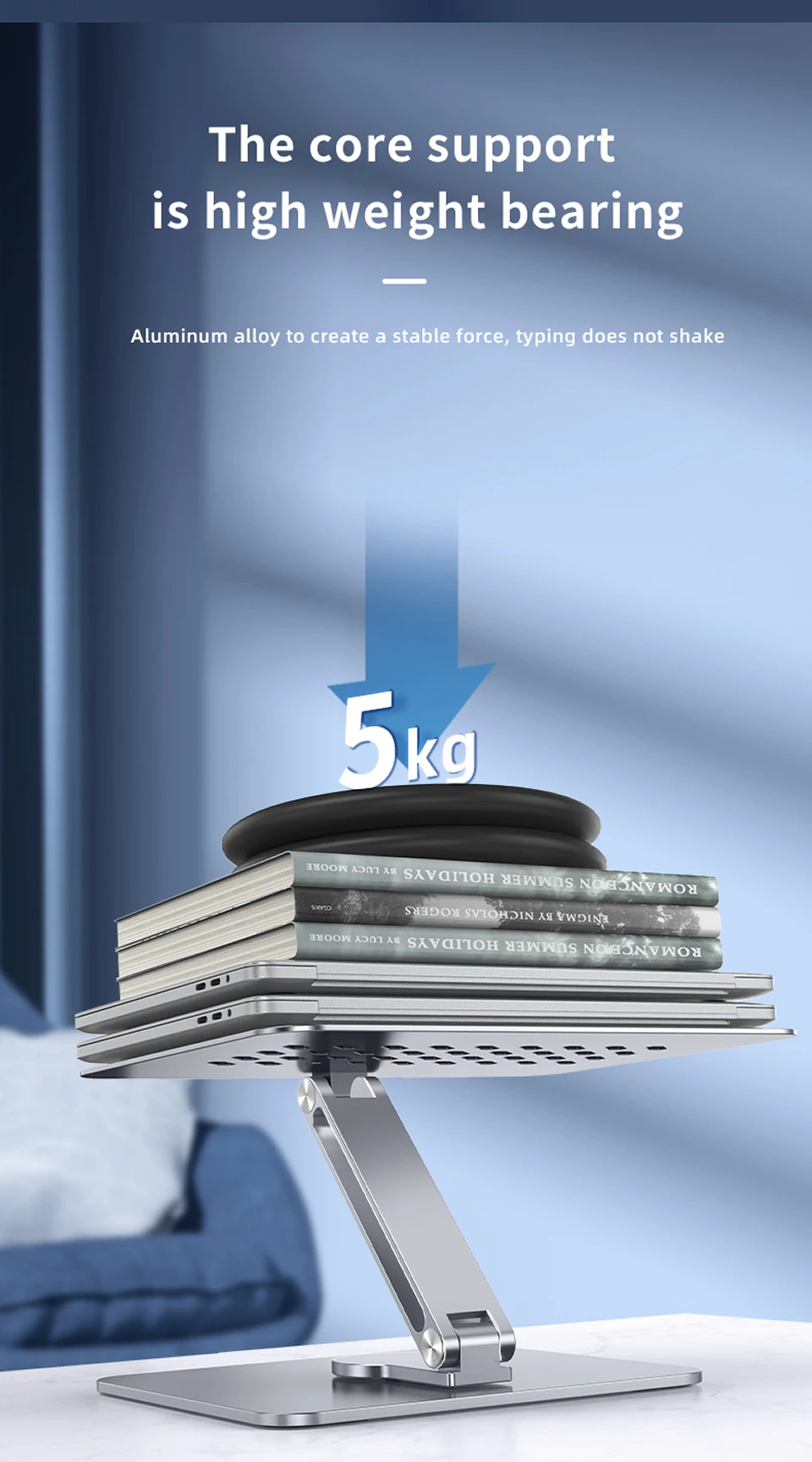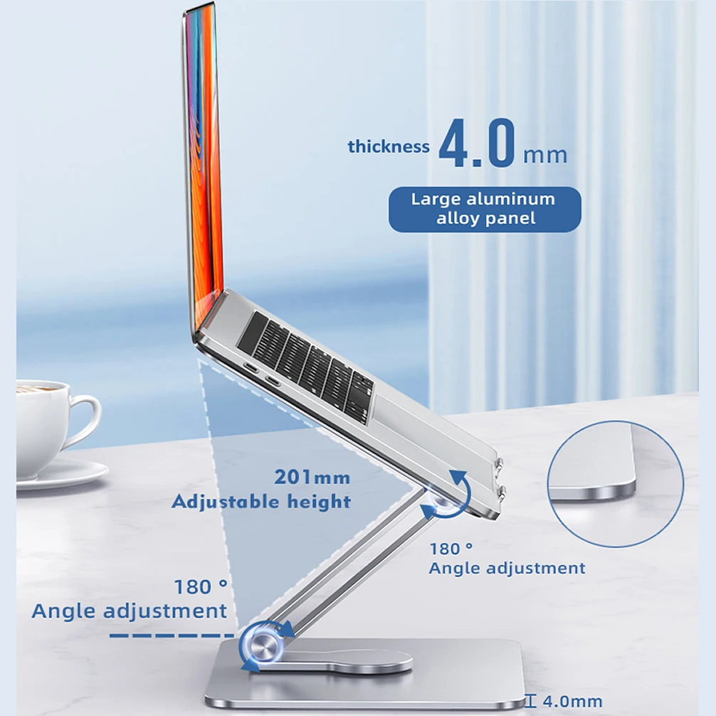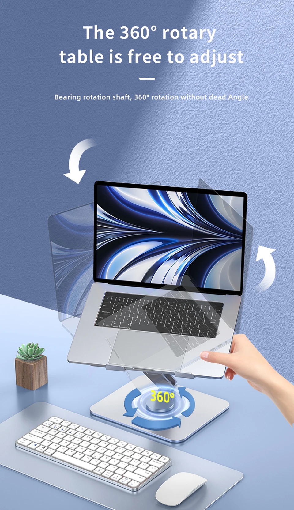 Soporte para computadora portátil 360 ° Soporte giratorio para computadora portátil Disipación de calor de aleación de aluminio elevable