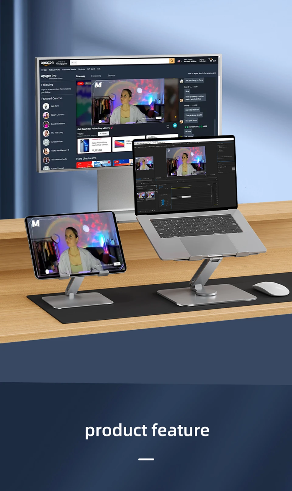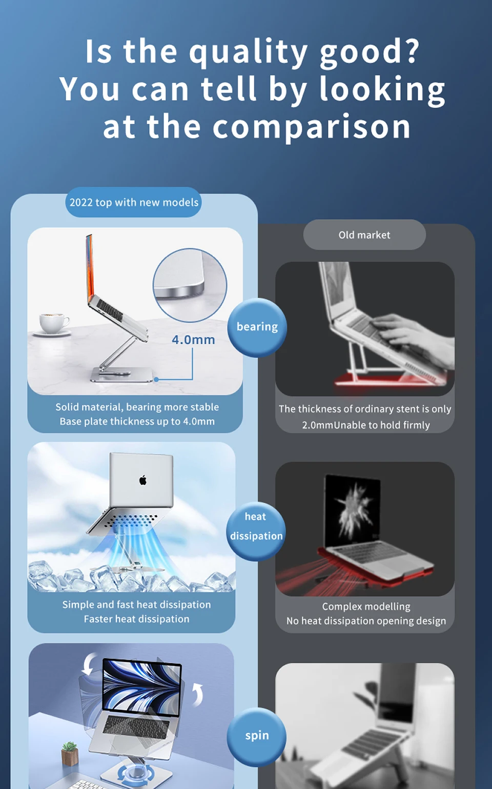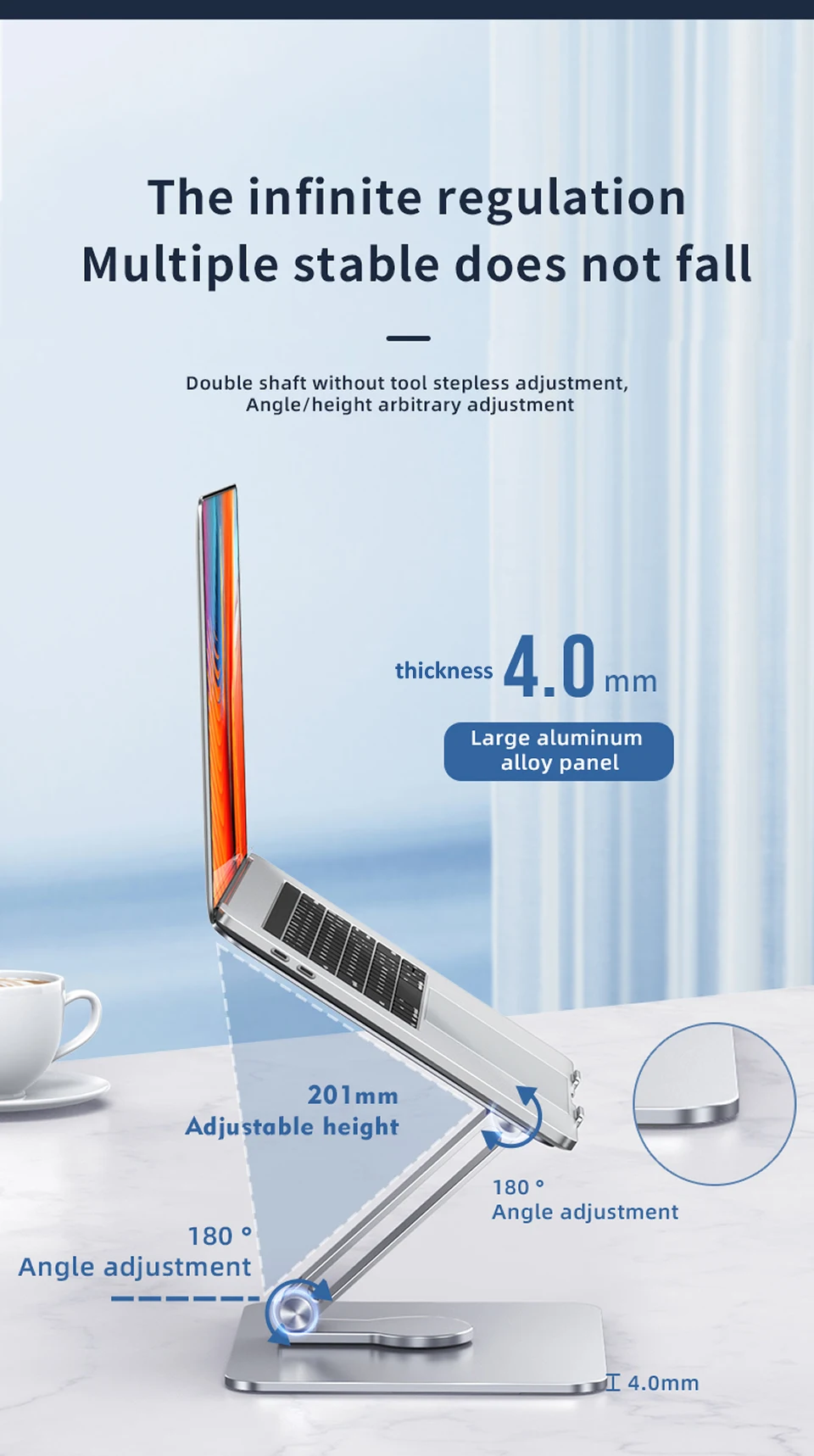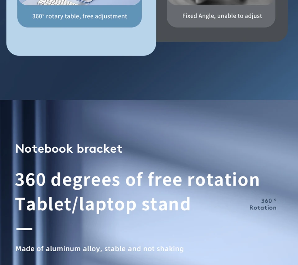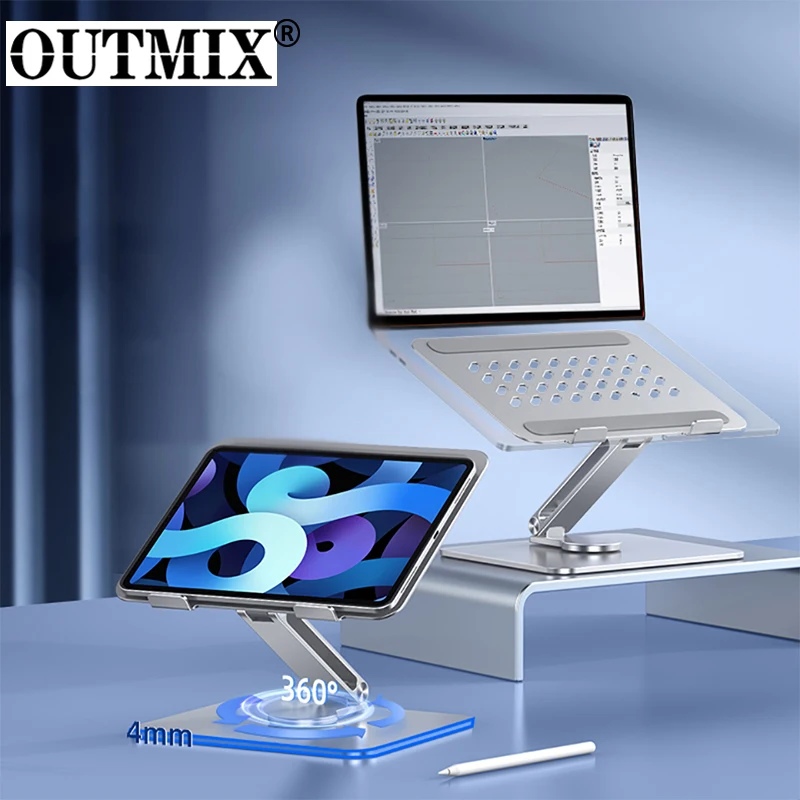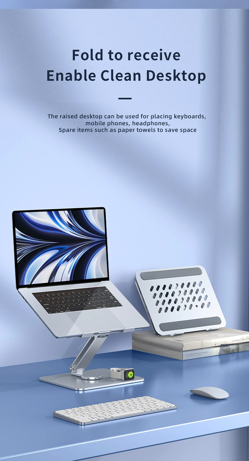 Soporte para computadora portátil 360 ° Soporte giratorio para computadora portátil Disipación de calor de aleación de aluminio elevable