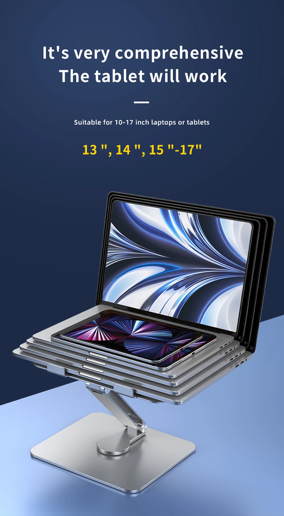 Comprar Soporte giratorio de 360 ° para ordenador portátil, base de aleación de aluminio con disipación de calor, Compatible con tableta de 9 a 17,3 pulgadas