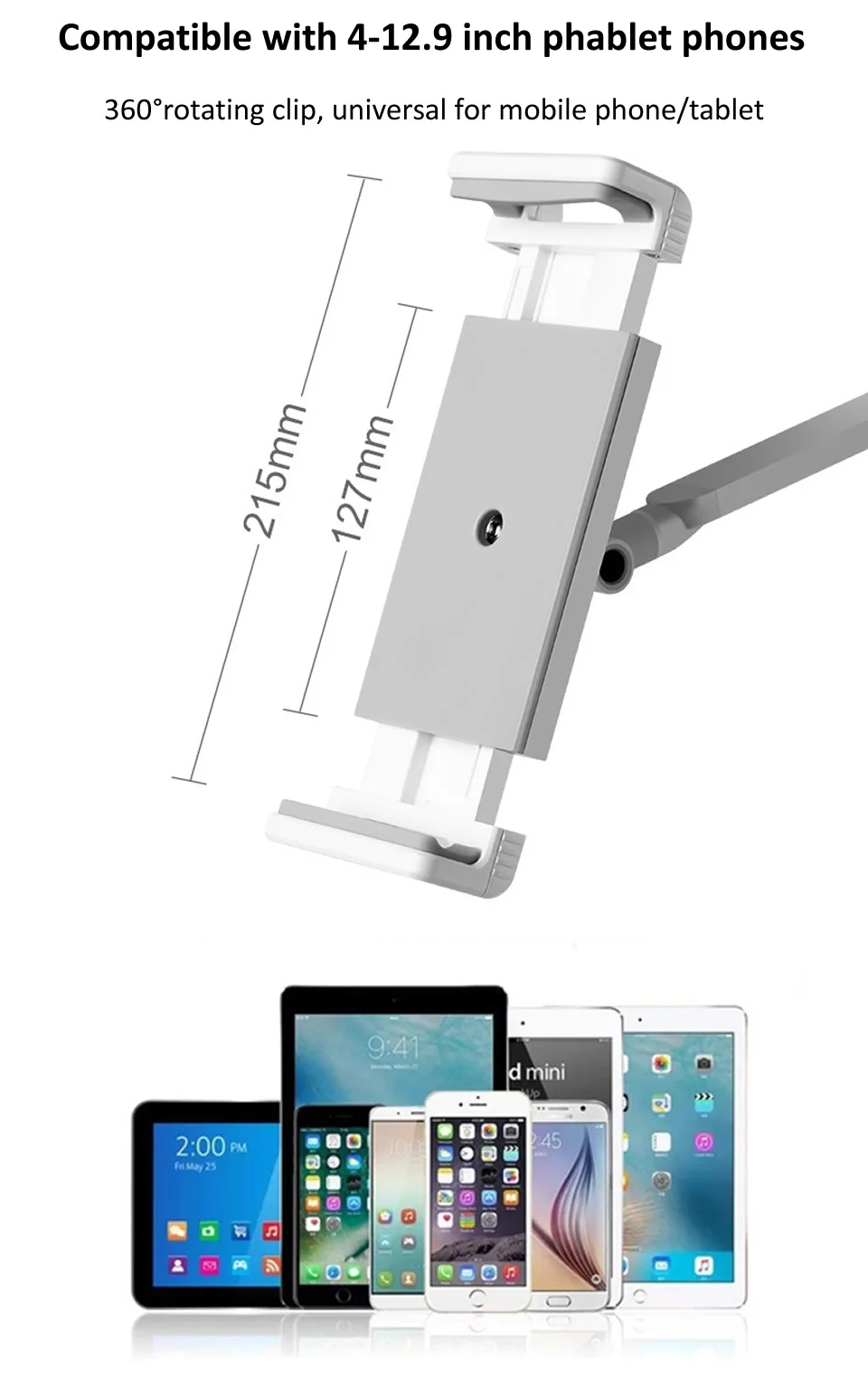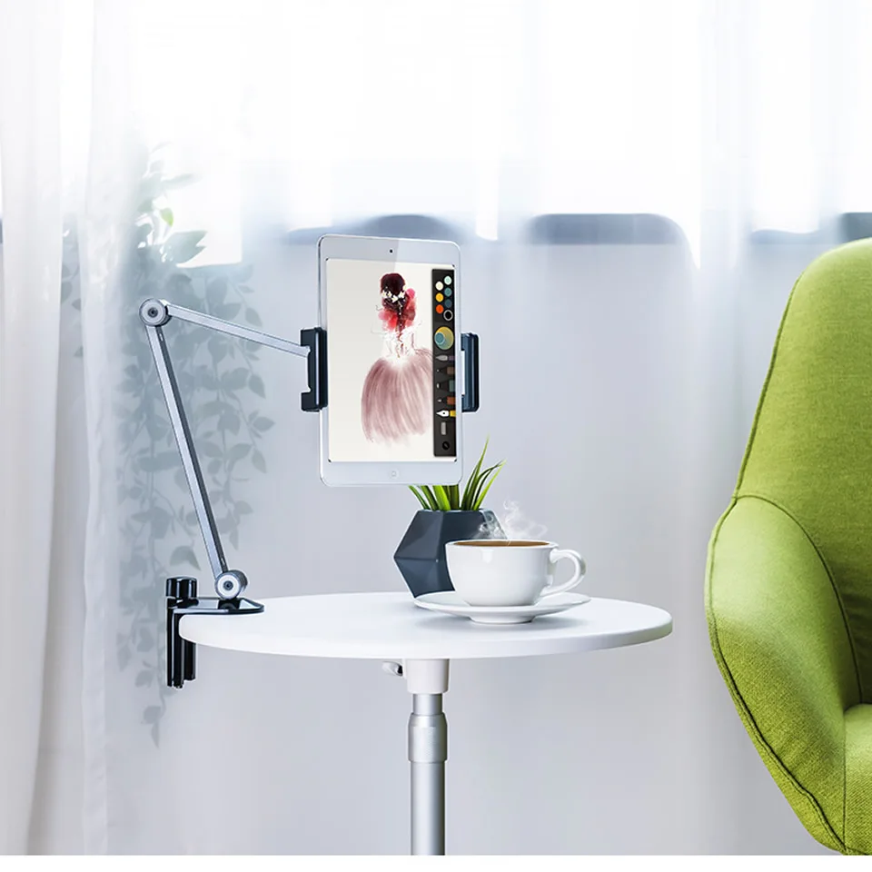 Soporte para tableta Soporte giratorio para teléfono móvil de brazo largo Altura/ángulo ajustable