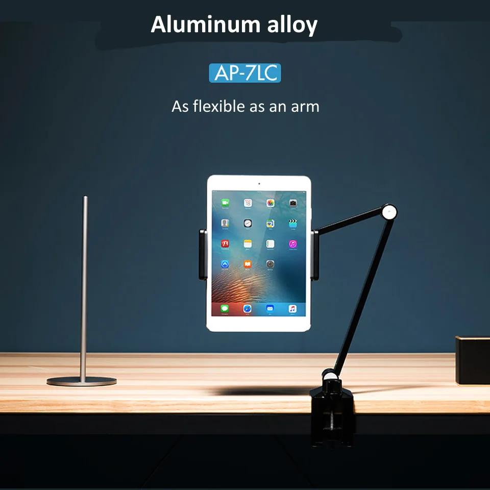 Comprar Soporte giratorio de aleación de aluminio para tableta, soporte de brazo largo para teléfono móvil, altura/ángulo ajustable, 4-13 pulgadas, iPhone, iPad