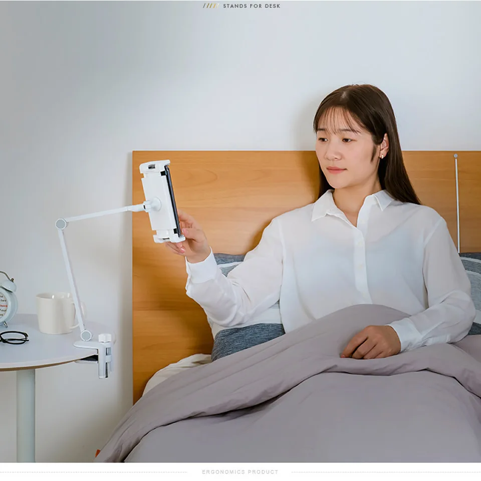 Soporte para tableta Soporte giratorio para teléfono móvil de brazo largo Altura/ángulo ajustable