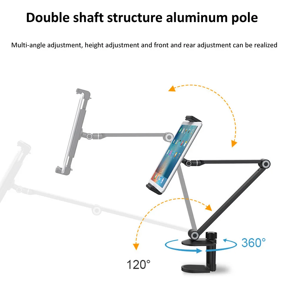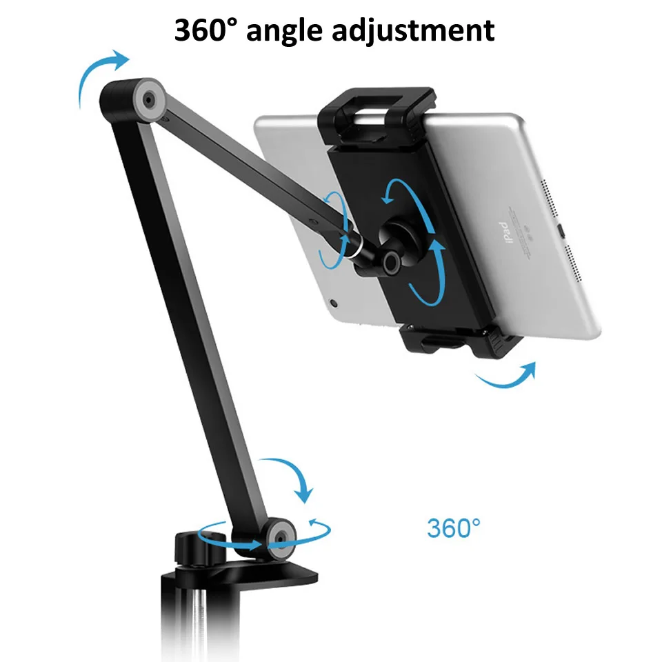 Comprar Soporte giratorio de aleación de aluminio para tableta, soporte de brazo largo para teléfono móvil, altura/ángulo ajustable, 4-13 pulgadas, iPhone, iPad
