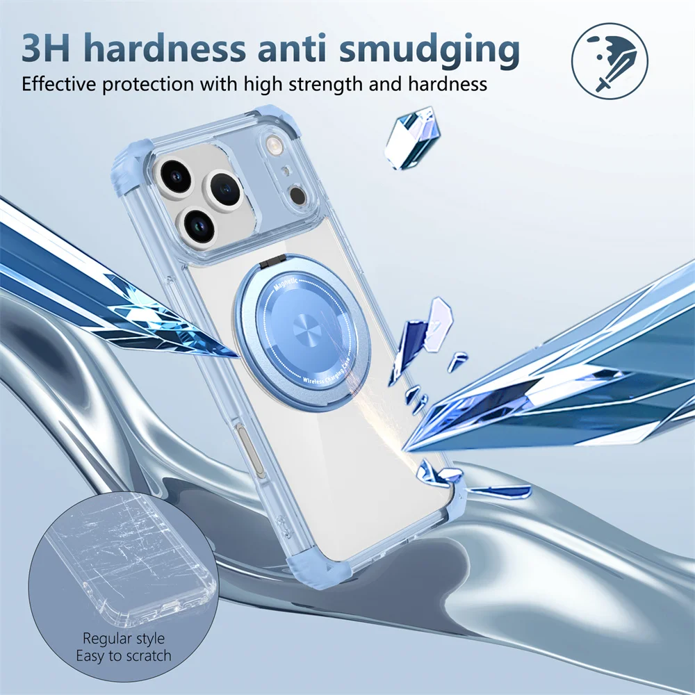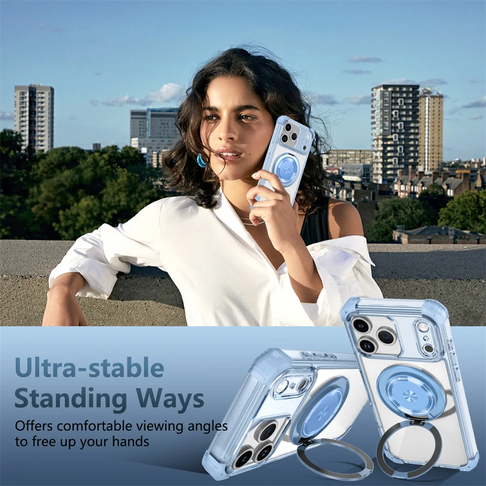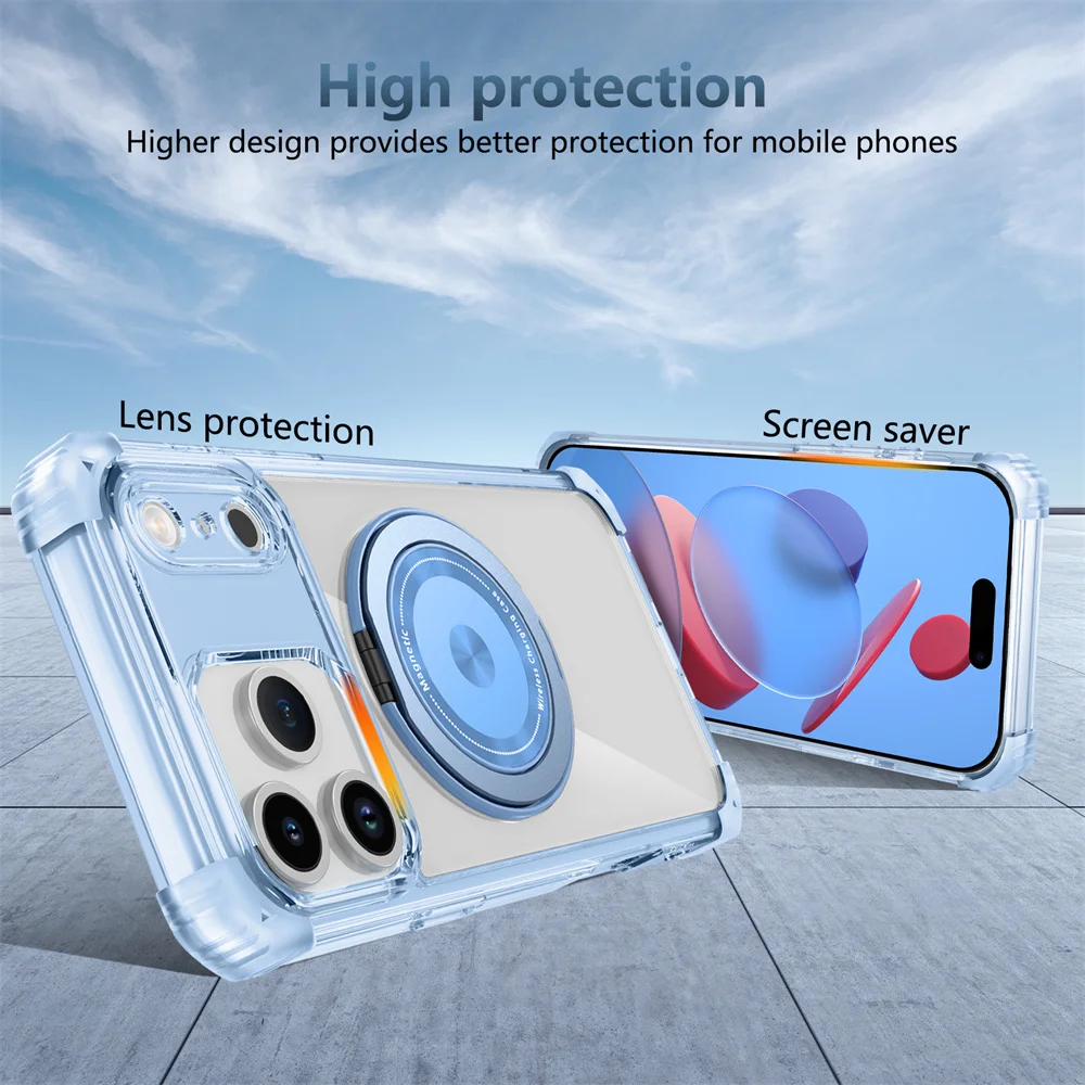Soporte giratorio soporte plegable magnético funda de teléfono transparente para iPhone 15 17 16 Plus 14 13 12 11 Pro Max armadura parachoques cubierta trasera