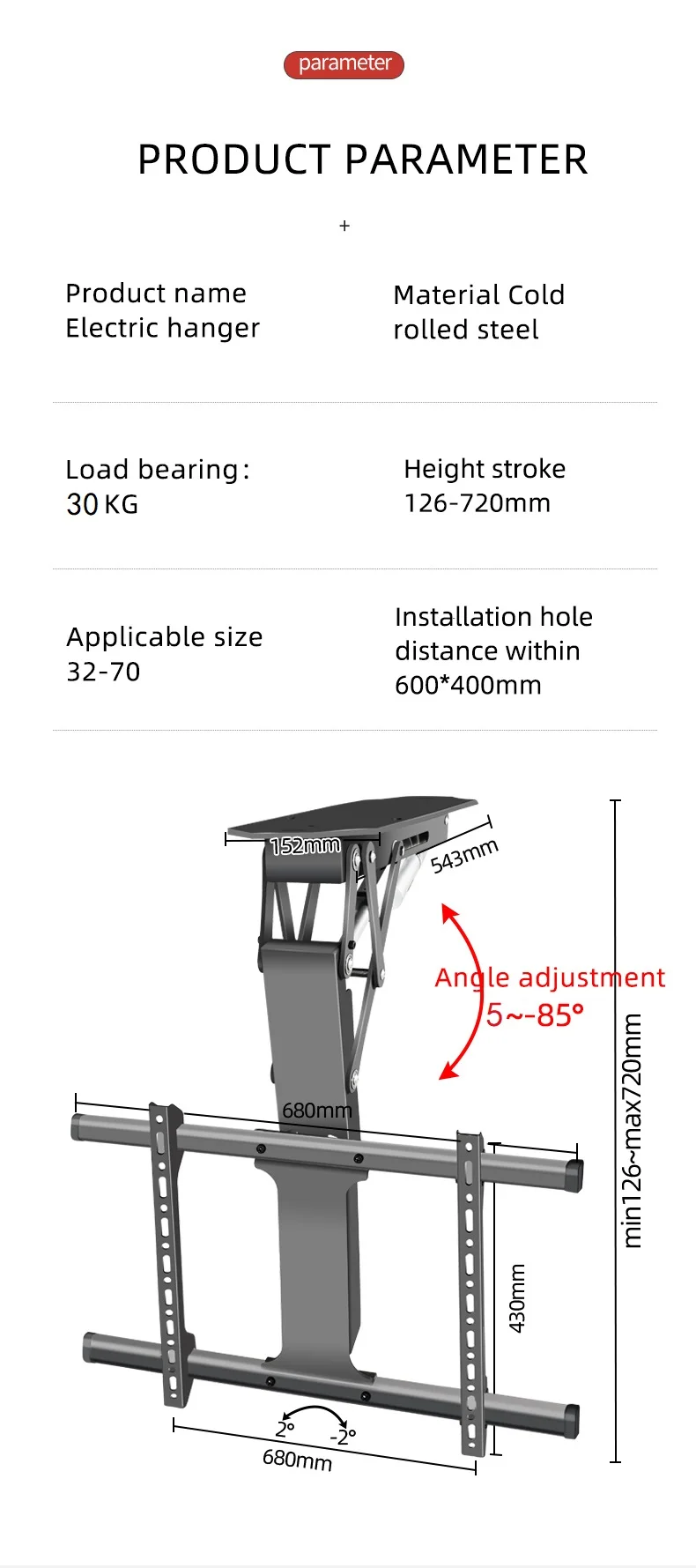 Soporte giratorio para Control remoto eléctrico LIFT de techo, soporte motorizado de 50 a 75", soporte de pared ajustable para montaje en techo DT500