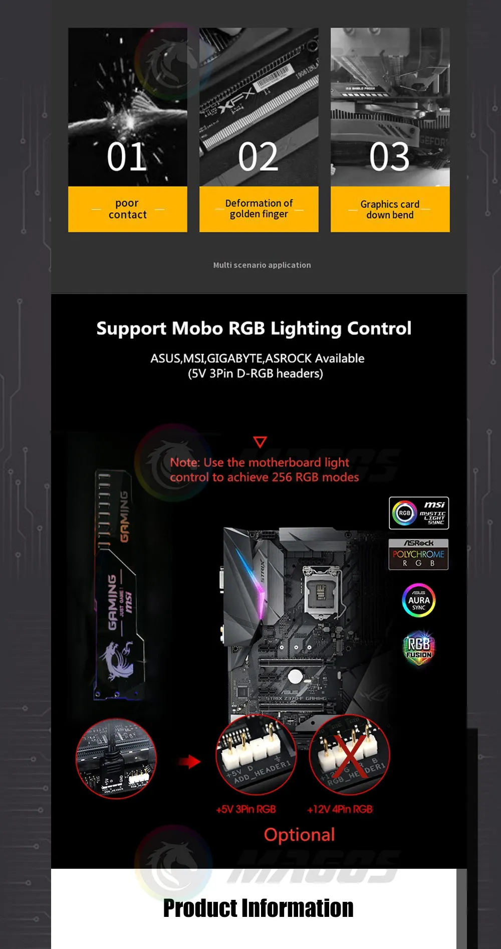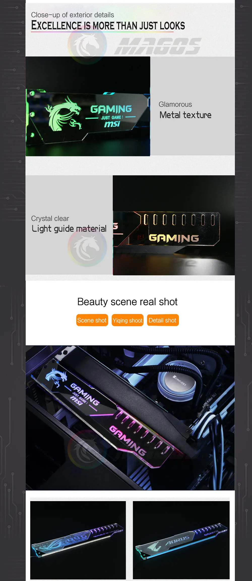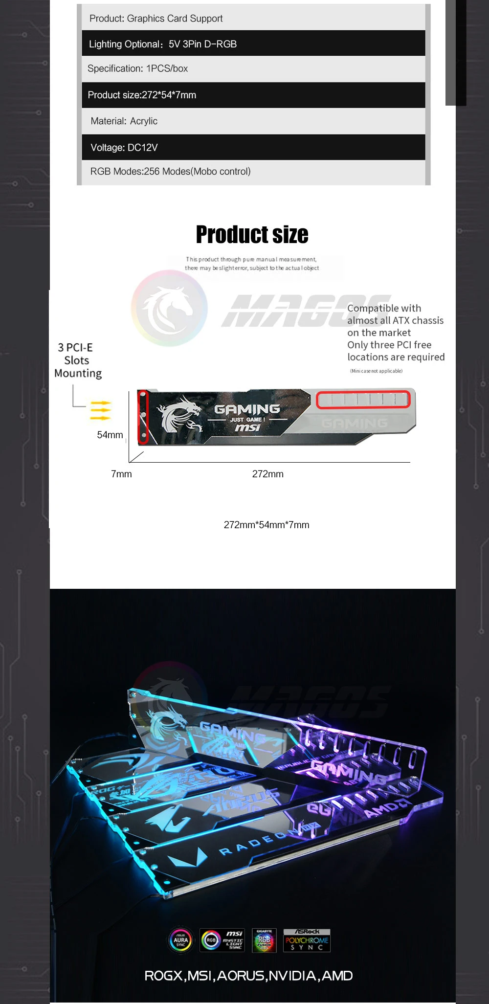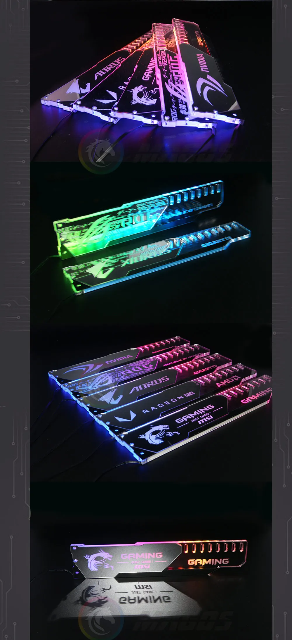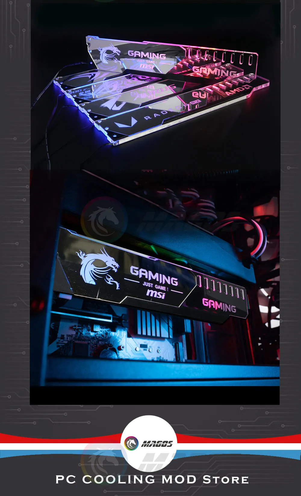 Soporte GPU ARGB superficie de espejo plateado ROG MSI AROUS AMD NVIDIA Logo placa base RGB SYNC Gaphics soporte de tarjeta Protector