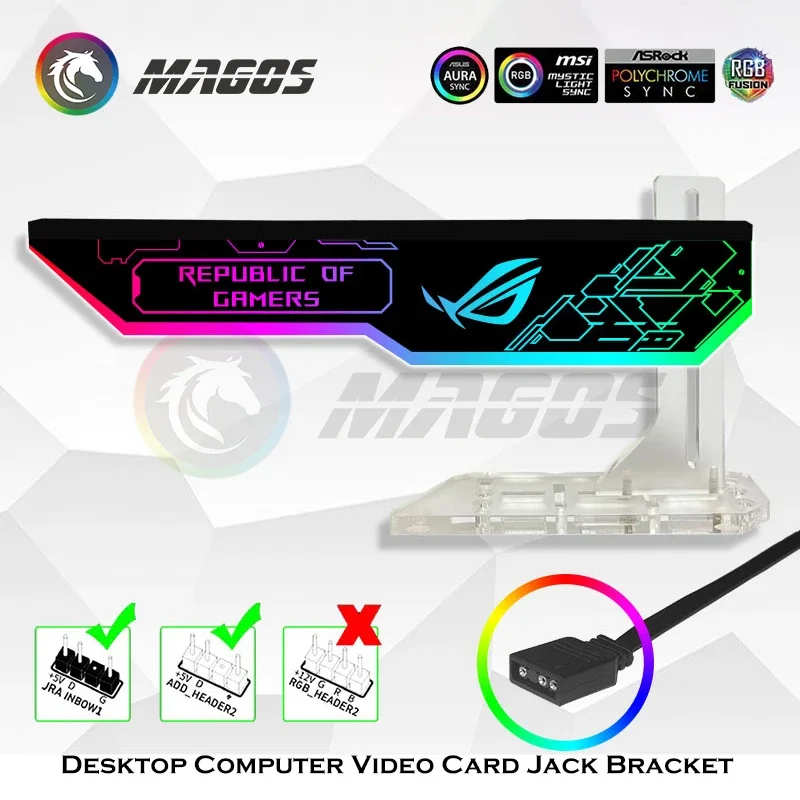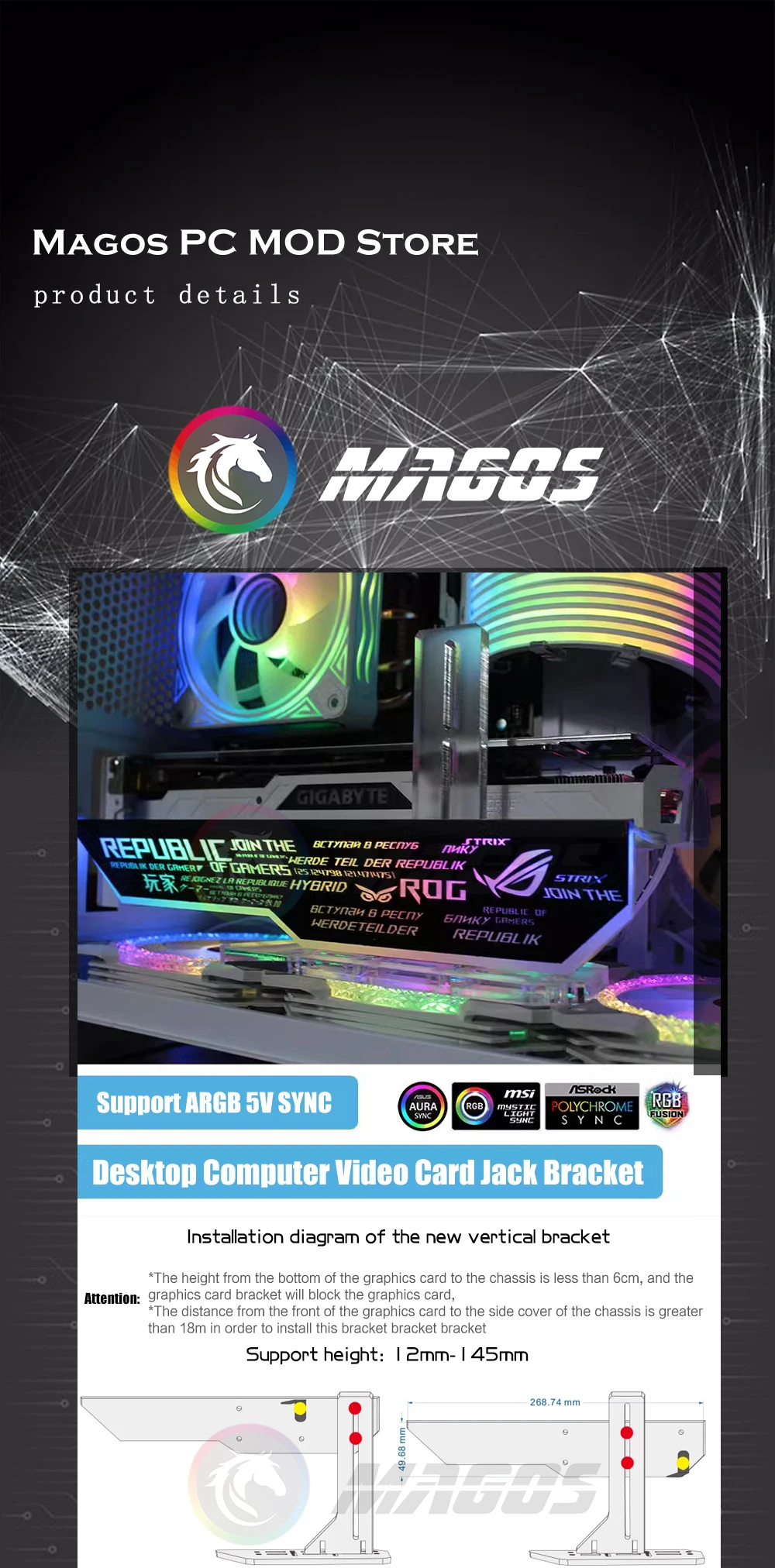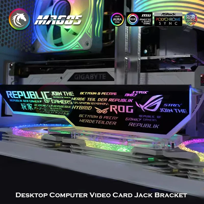 Soporte de GPU de fantasía ARGB AURA SYNC, soporte de conector de tarjeta de vídeo, instalación Vertical para ASUS MSI AORUS Faith, PC MOD negro/blanco