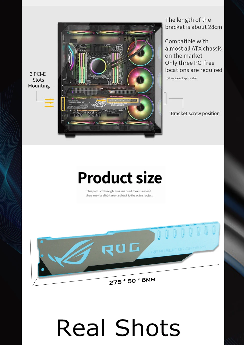 Comprar Soporte para GPU gráfico RGB, tarjeta de vídeo de aluminio, VGA, ROG/MSI/AMD/NVIDIA/AORUS, 12V, RGB/5V, ARGB SYNC, negro/plateado