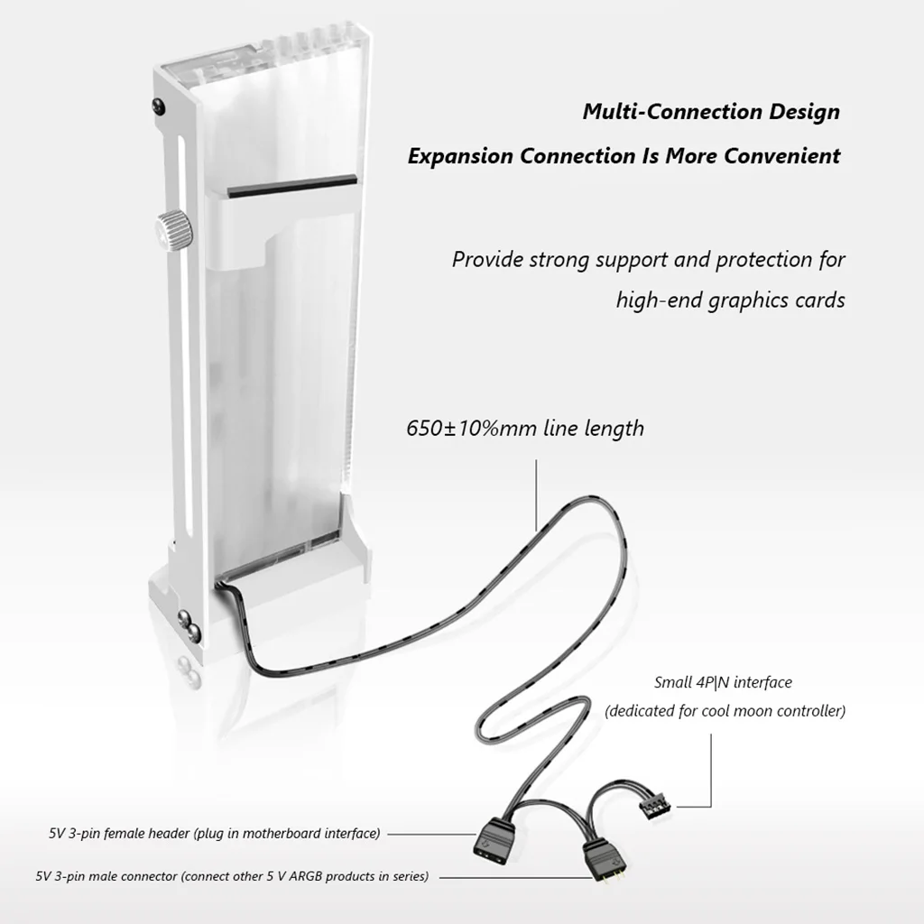 Potente diseño de soporte: proporcione un fuerte soporte y protección para tarjetas gráficas de alta gama, evite daños al final de la tarjeta gráfica debido al hundimiento y deformación de la carga a largo plazo y proteja la tarjeta gráfica para que funcione de manera equilibrada y estable.