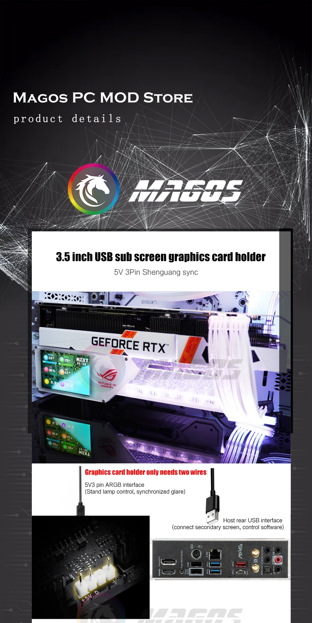 Comprar Soporte de GPU para pantalla IPS de 3,5 pulgadas, ARGB, PC, Hardware, Monitor, USB tipo C, AIDA64, bricolaje libre, temas dinámicos, soporte para tarjeta de Video