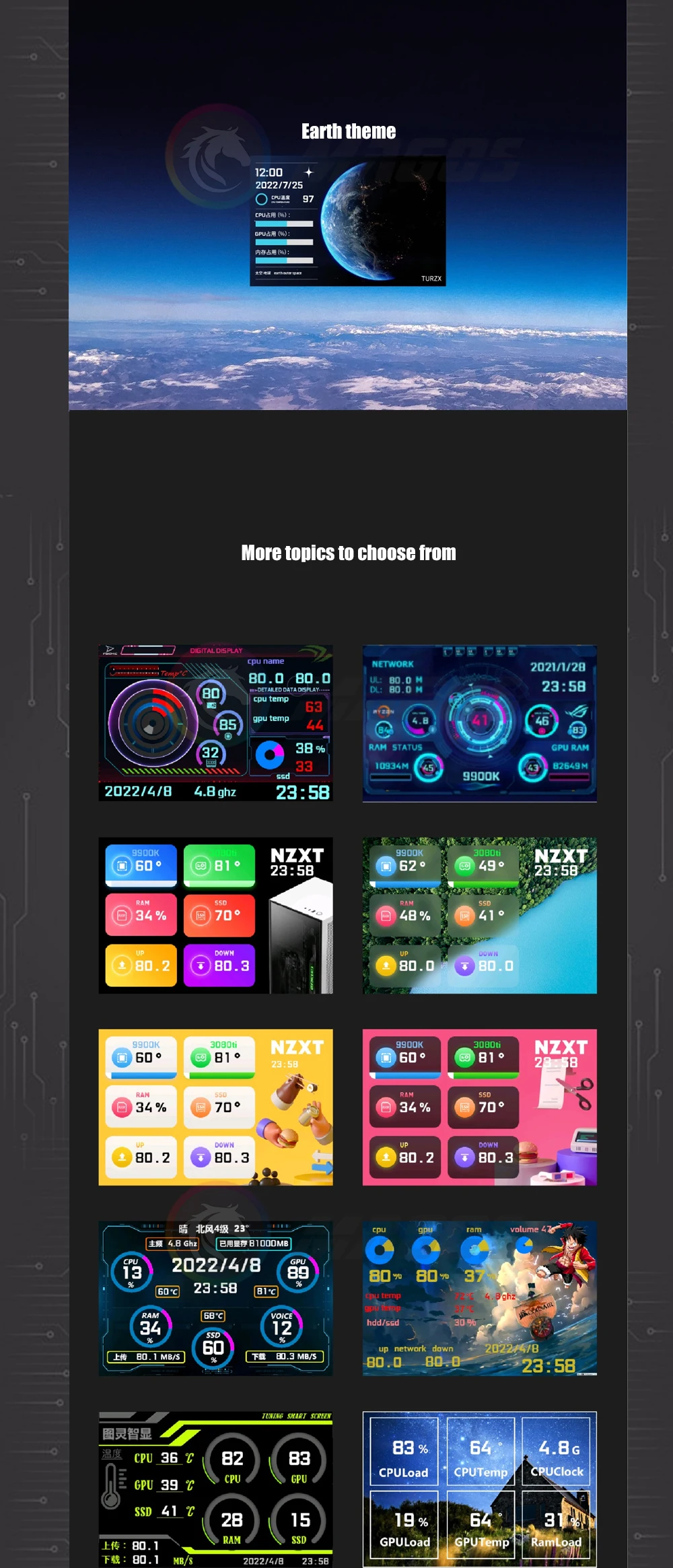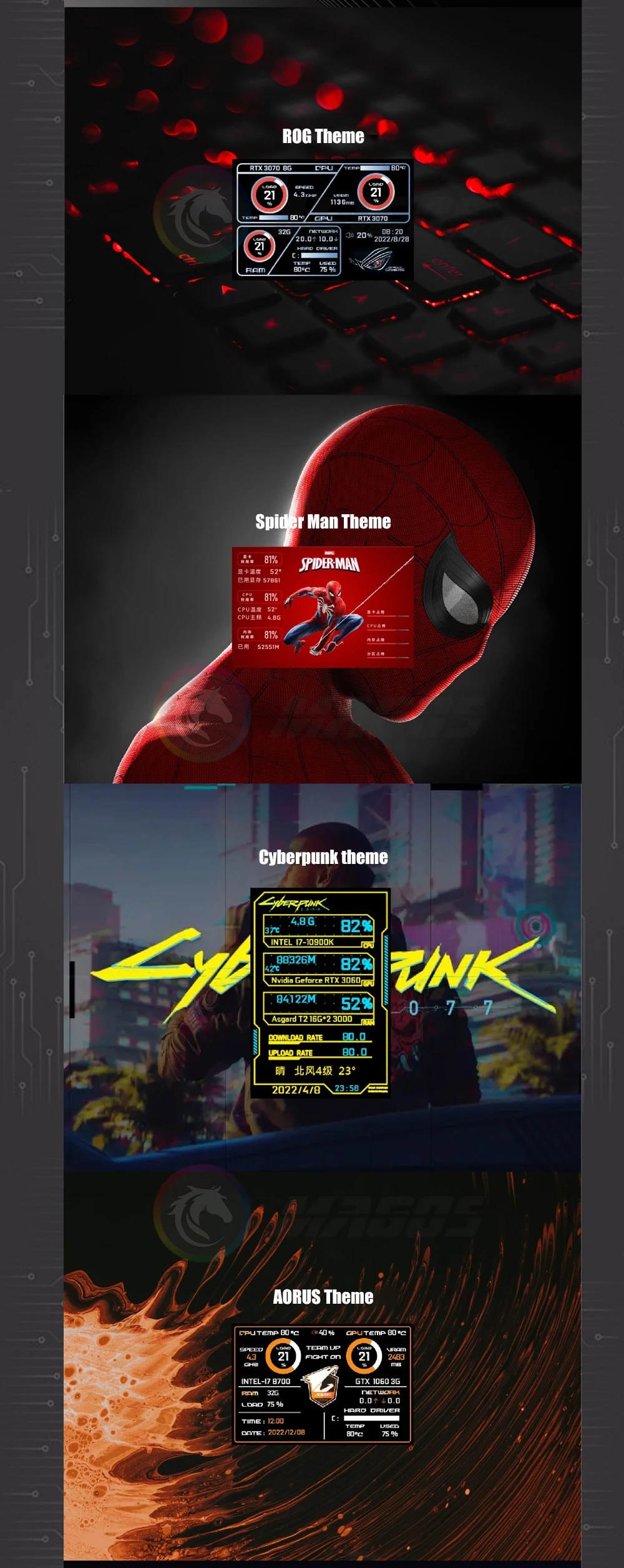 Soporte de GPU para pantalla IPS de 3,5 pulgadas, ARGB, PC, Hardware, Monitor, USB tipo C, AIDA64, bricolaje libre, temas dinámicos, soporte para tarjeta de Video