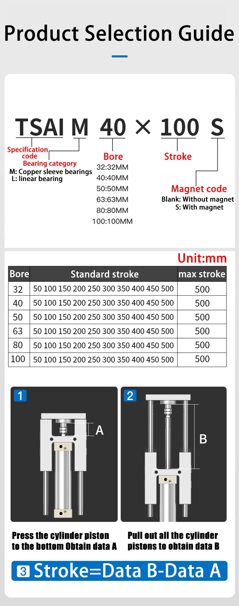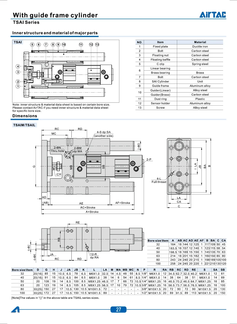 Soporte de guía tipo Airtac TSAIL Serie 32 40 50 63 80 100 Diámetro 50 100 150 200 250 300 350 400 450 500 Carreras TSAIL-32-50