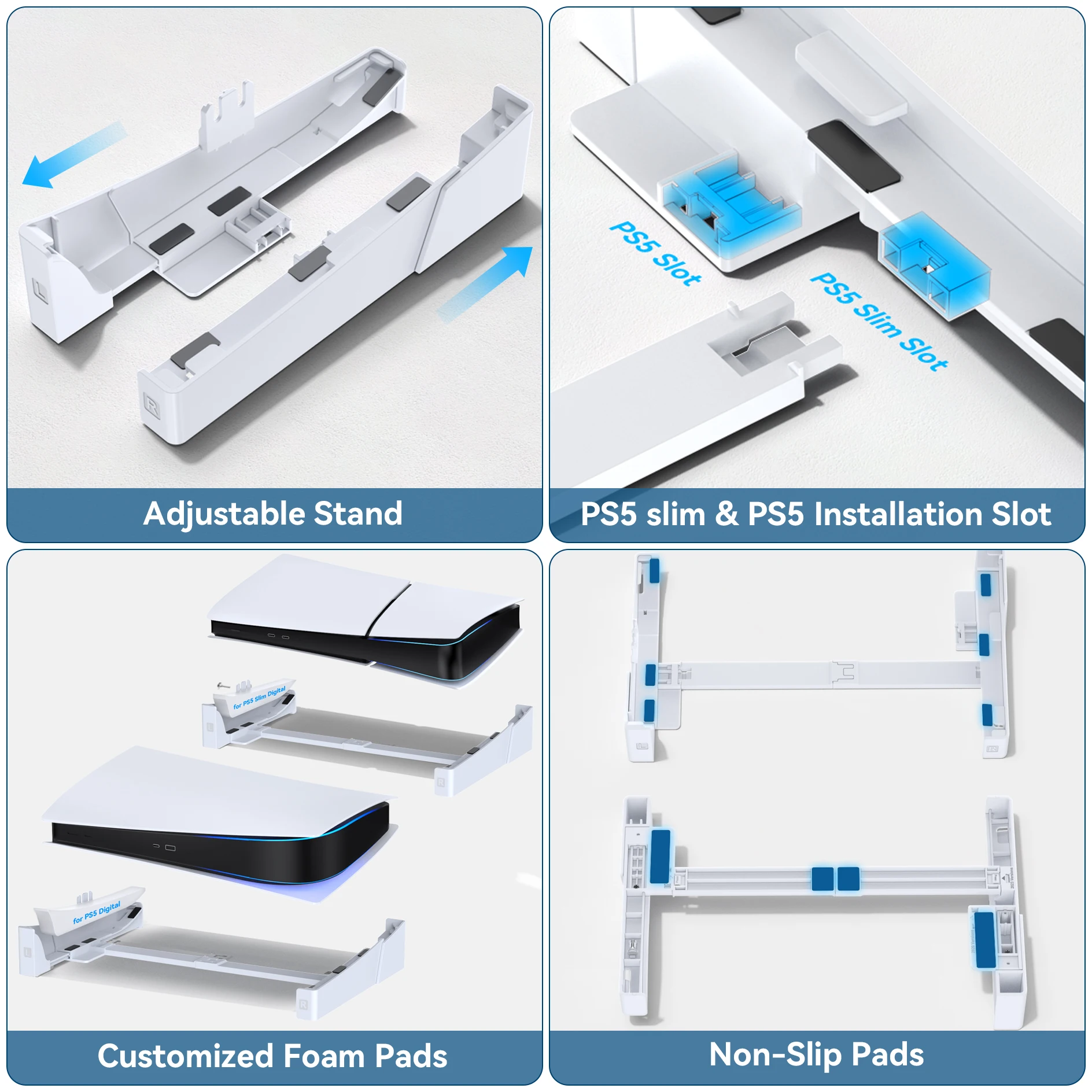 Para PS5/PS5 Slim Console Holder PS5 Soporte horizontal PS5 Base Stand para Playstation 5 Disc & Digital Editions Accesorios