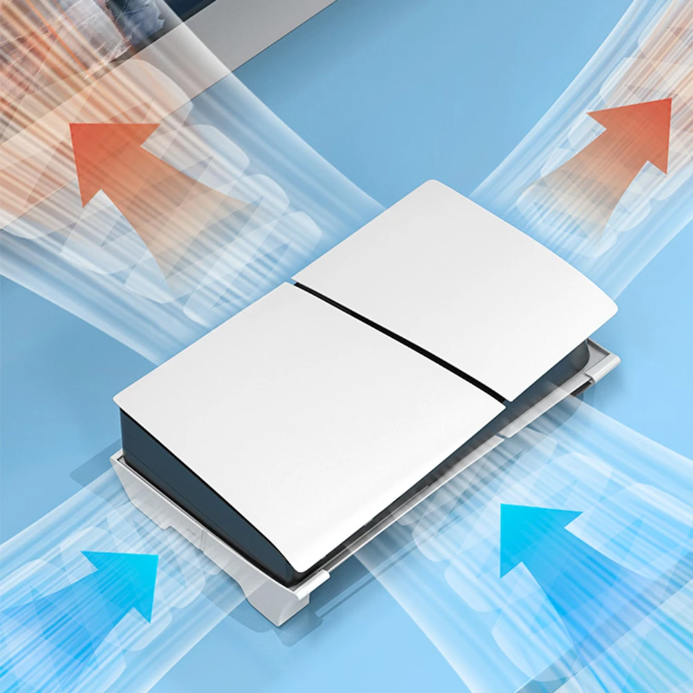 2. Refrigeración mejorada:El diseño elevado de la base horizontal de enfriamiento facilita un mejor flujo de aire alrededor de su compatible con PS5 Slim, mejorando significativamente la disipación de calor y evitando el sobrecalentamiento durante sesiones de juego prolongadas.