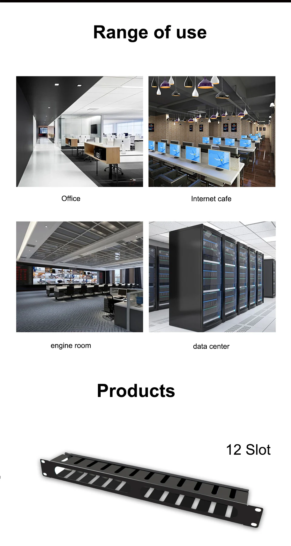 Soporte Horizontal de gestión de cables 1U, estante de servidor de 19 pulgadas, 12/24 ranuras, organizador de cables de conducto de dedo de Metal con CALA