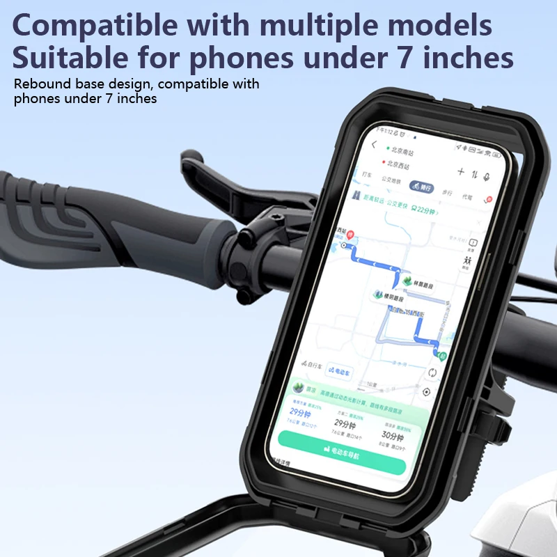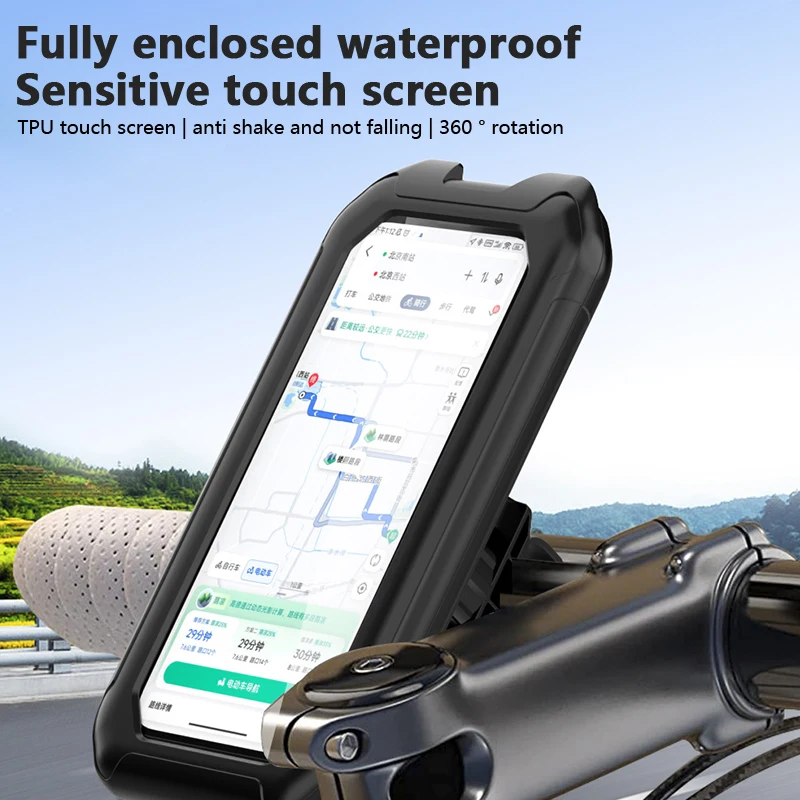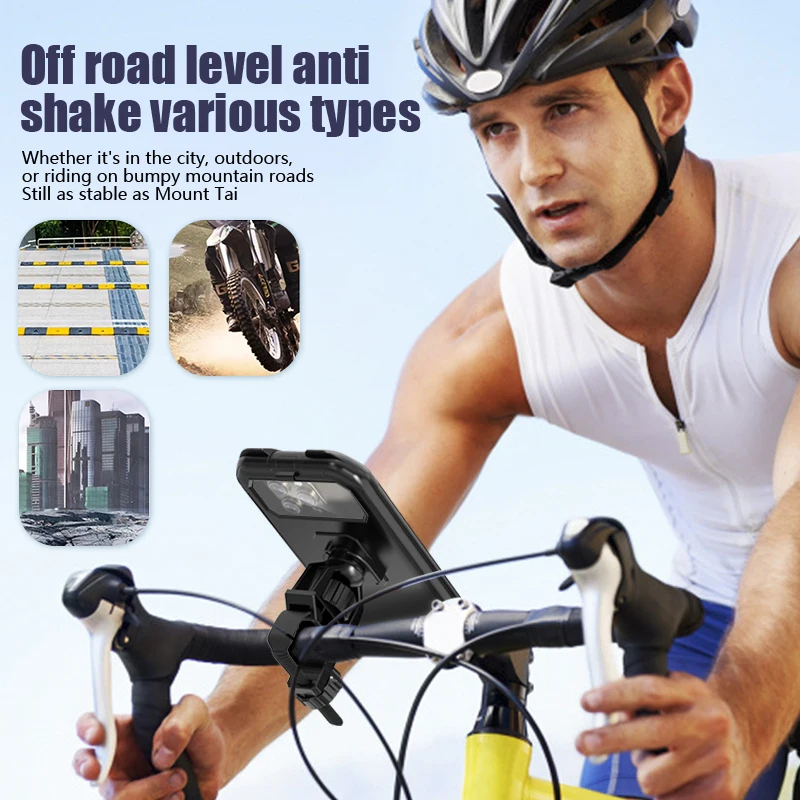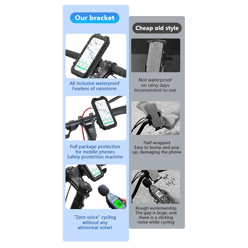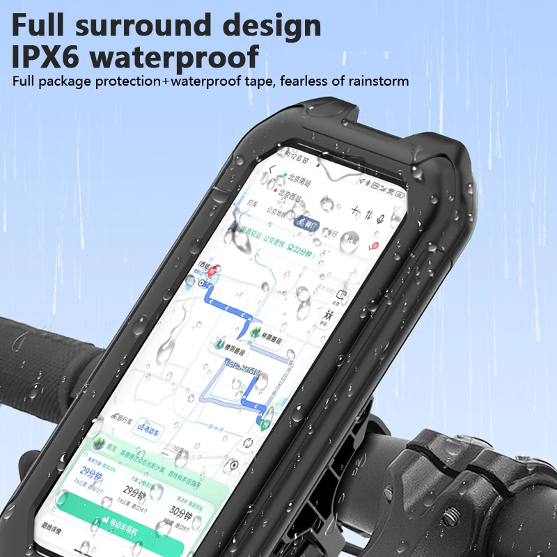3.Diseño resistente al agua: incluso en climas lluviosos, puede mantener su equipo seco, porque este soporte para teléfono móvil tiene una función impermeable, que puede proteger bien su teléfono móvil o equipo GPS.