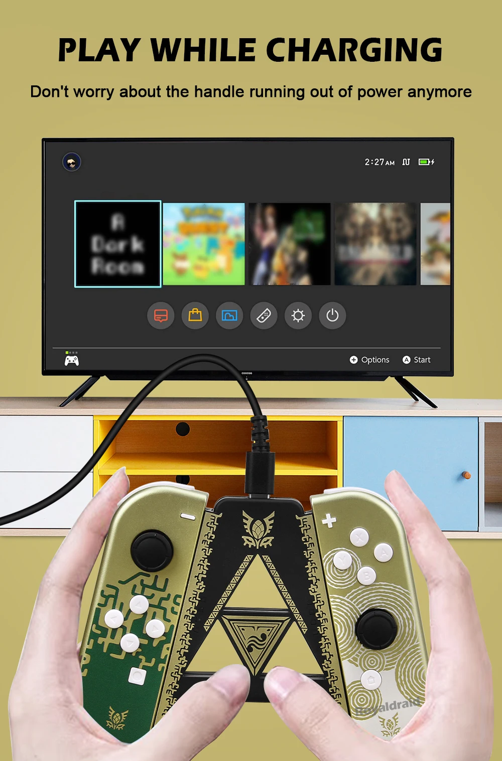 1 x empuñadura de carga 1 x cable de carga tipo C (El GamePad de Joycons no está incluido.)