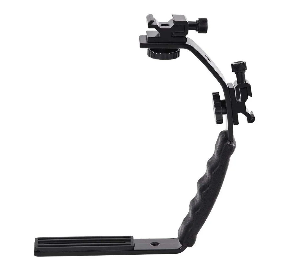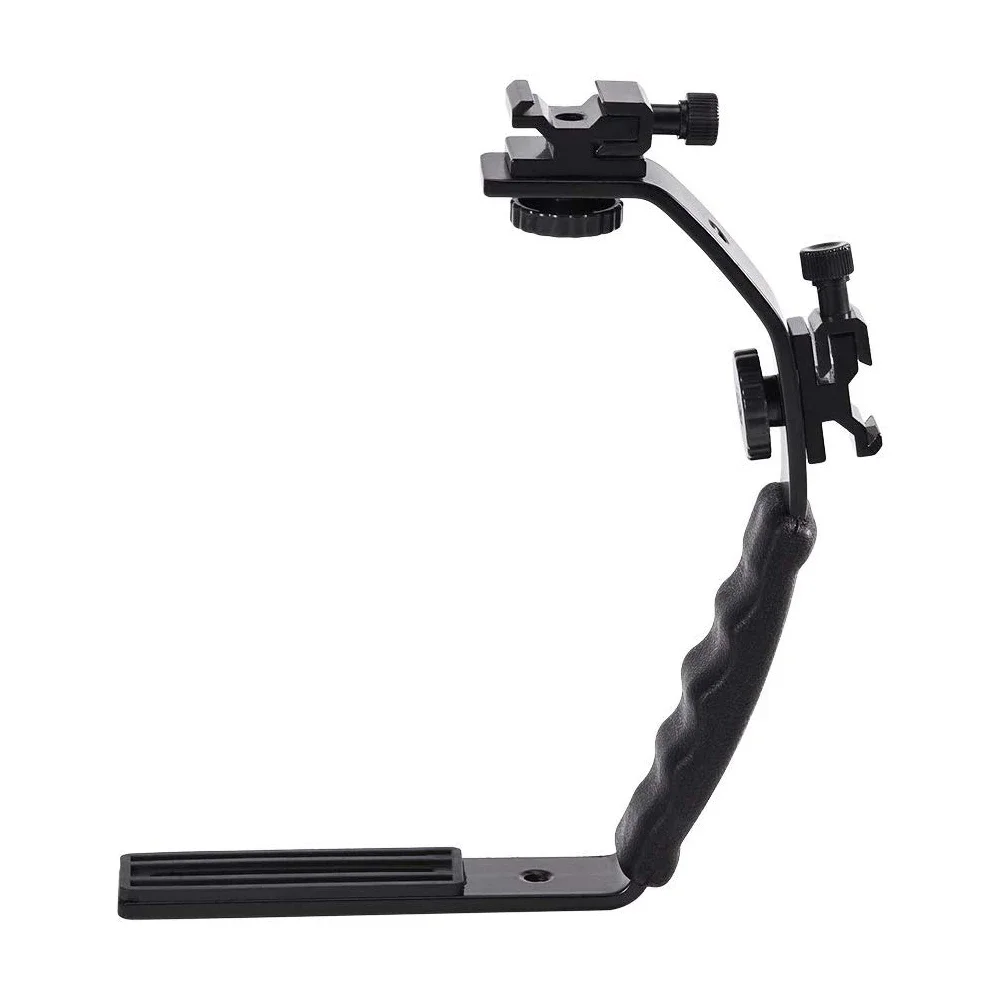 Soporte en L, montaje de zapata fría doble ajustable para Monitor, luz, Flash, micrófono, cámaras DSLR, videocámaras DV, accesorio