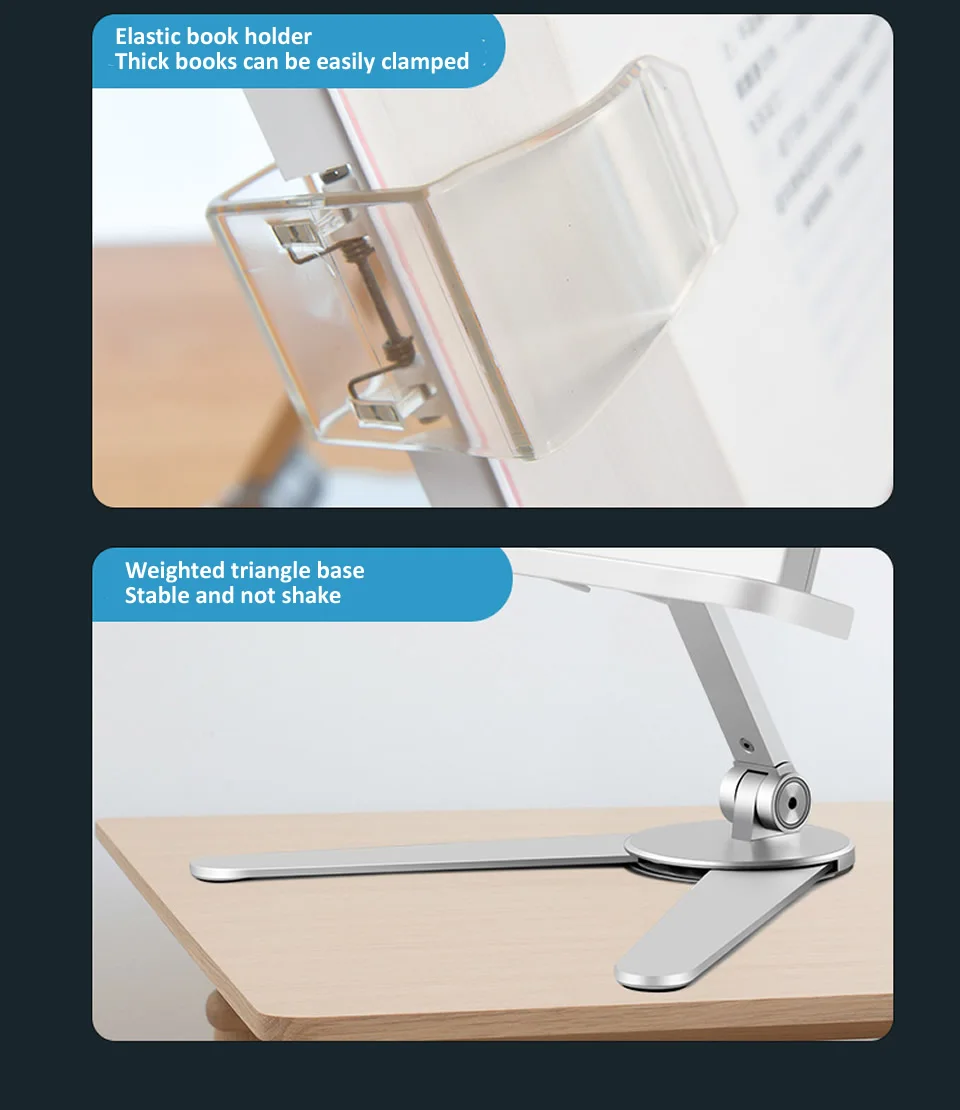 Soporte de libro de lectura de aluminio ajustable en altura de escritorio para estante de lectura para niños