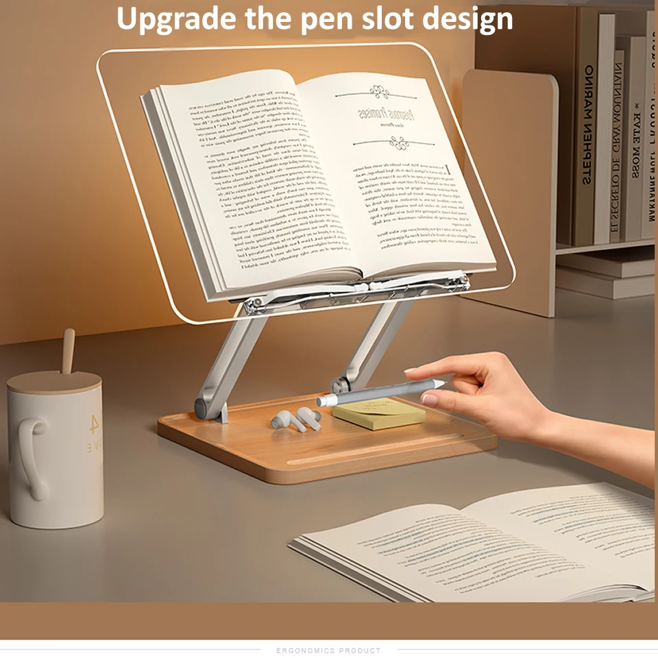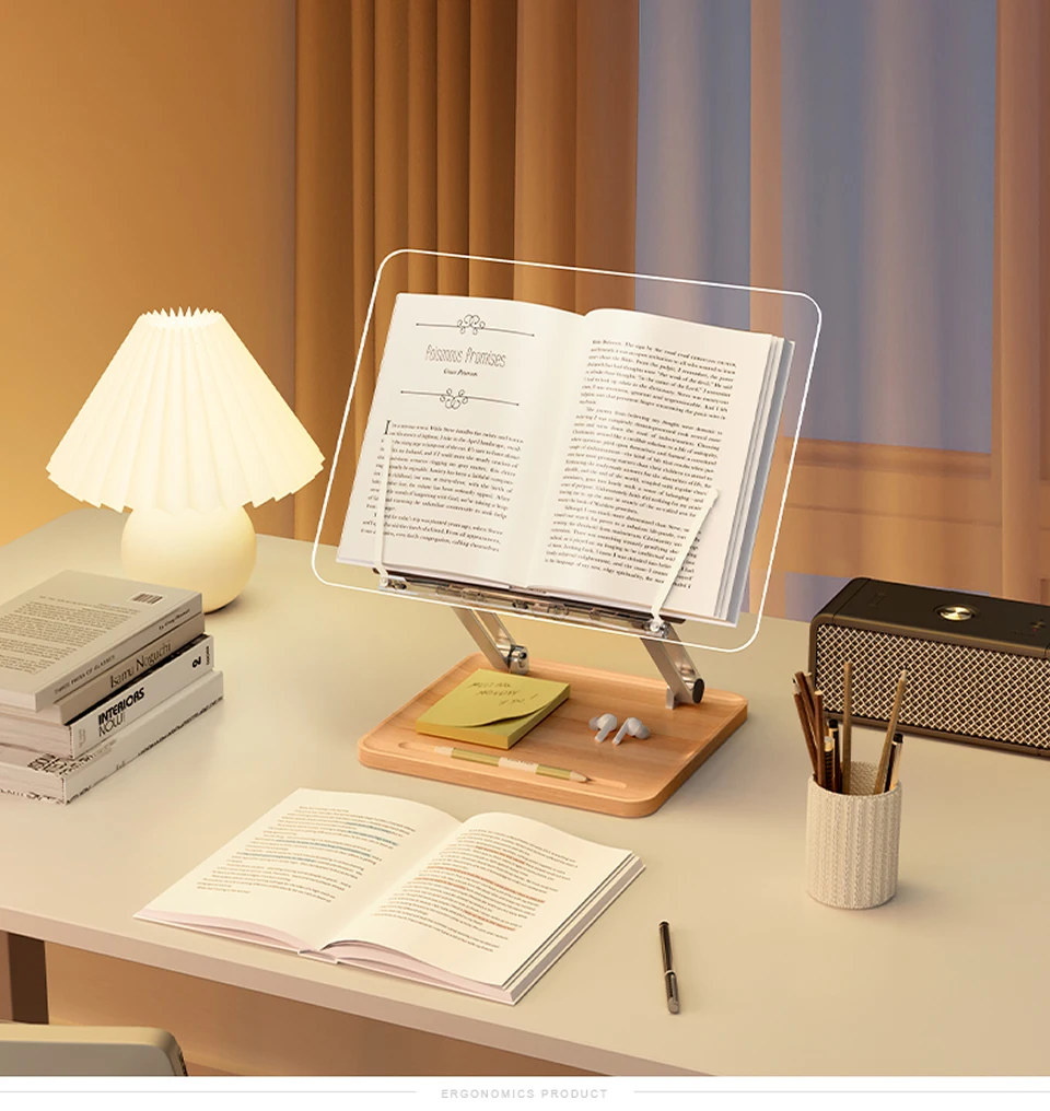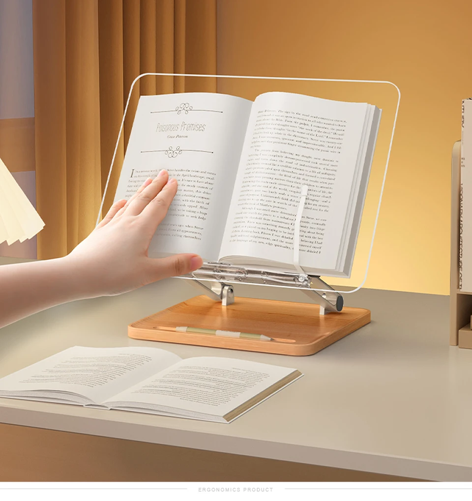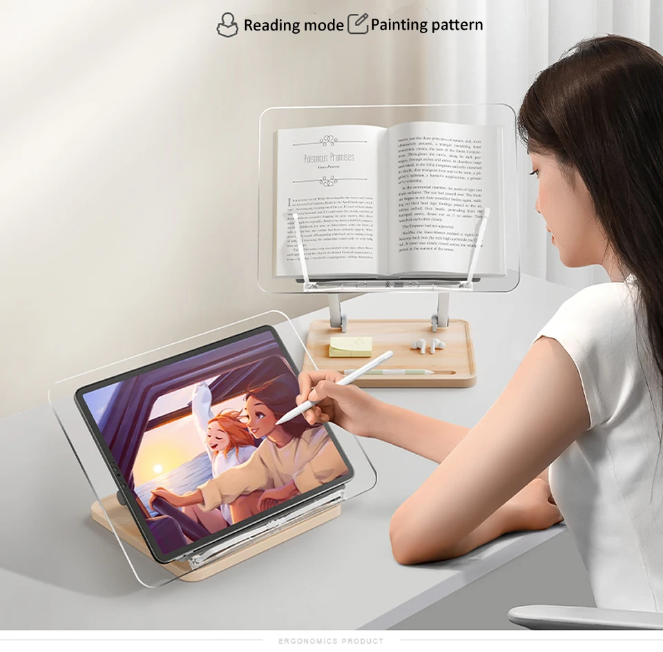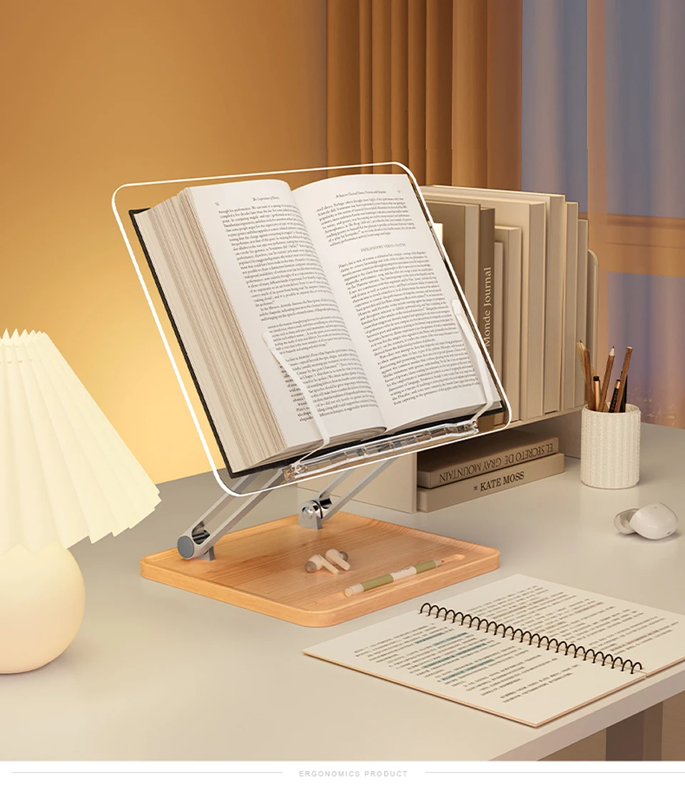 Soporte de lectura de madera con soporte para tableta de elevación multifunción acrílico transparente ligero