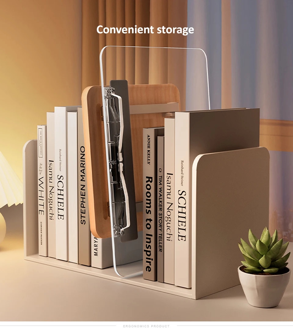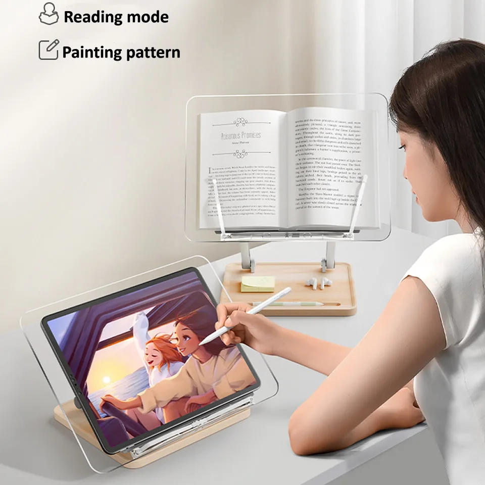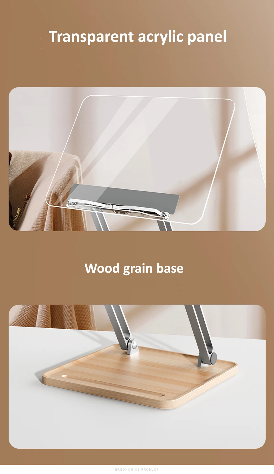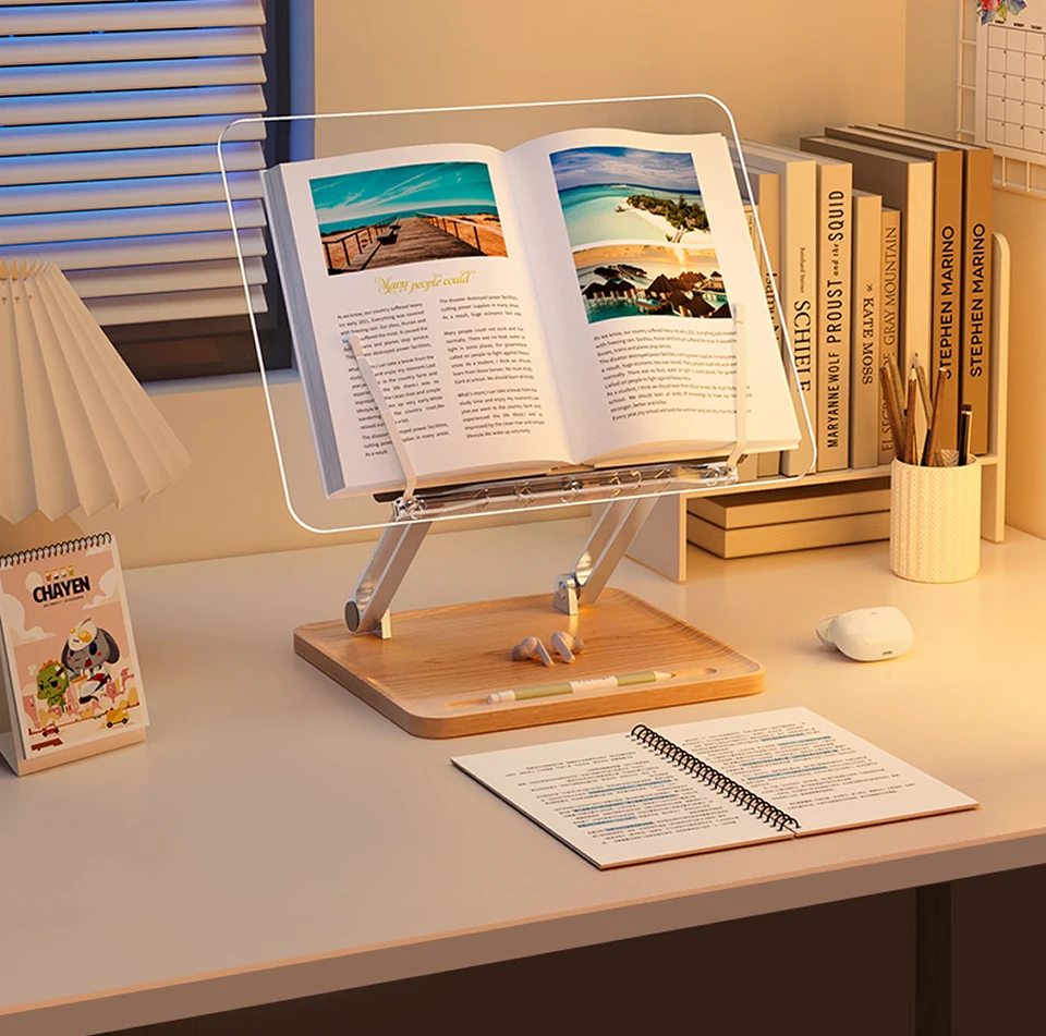 Soporte de lectura de madera con soporte para tableta de elevación multifunción acrílico transparente ligero