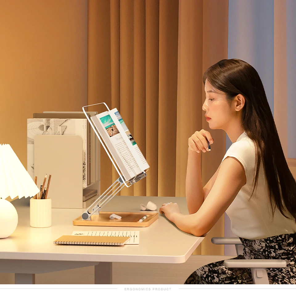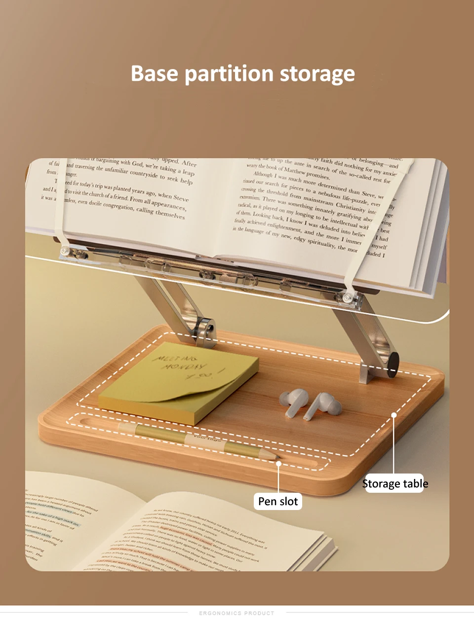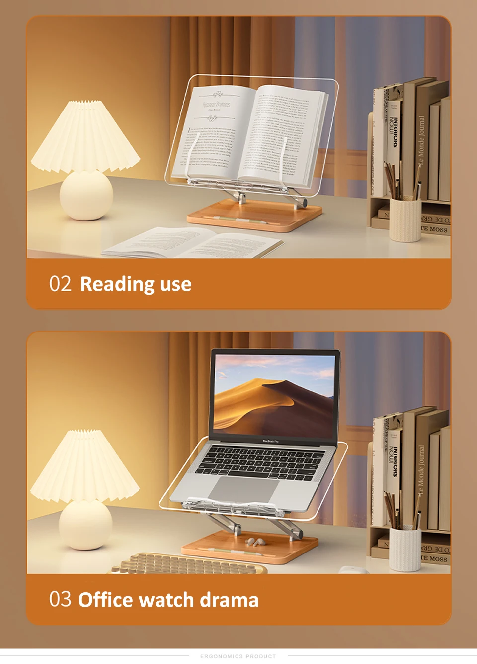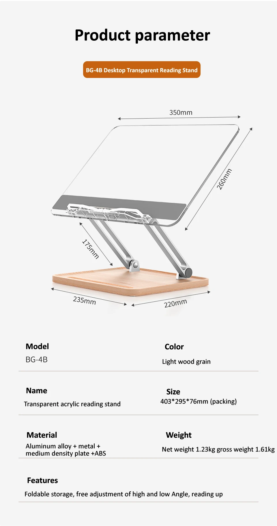 Soporte de lectura de madera con soporte para tableta de elevación multifunción acrílico transparente ligero