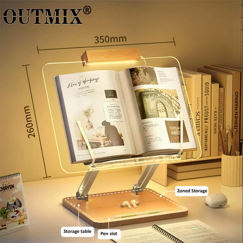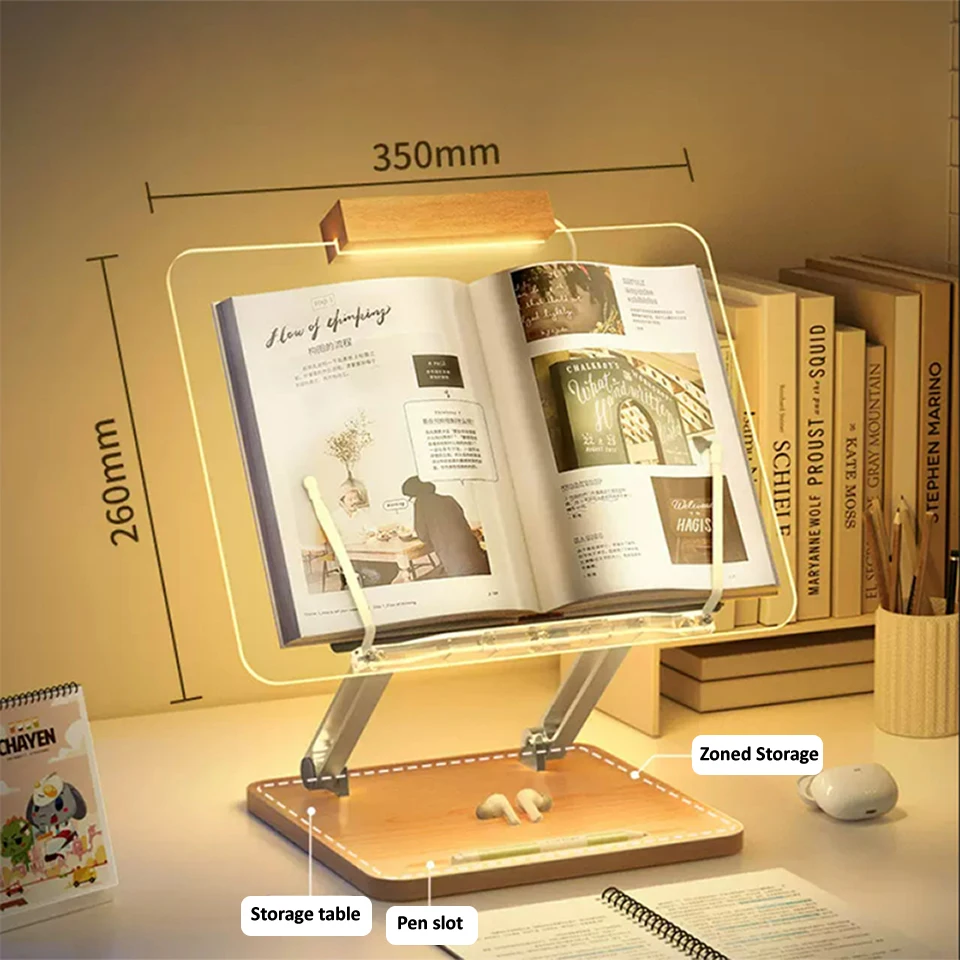 Comprar Soporte de lectura de madera con luz, acrílico transparente, multifunción, soporte para tableta, soporte para ordenador portátil, estantería de almacenamiento de escritorio