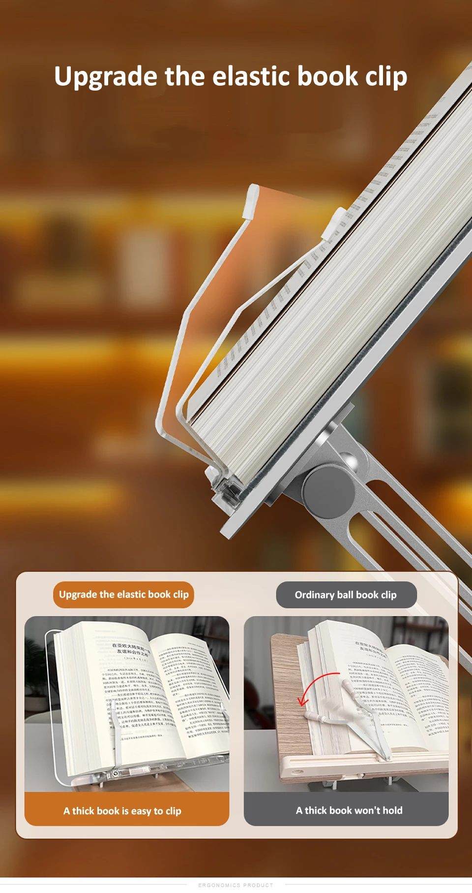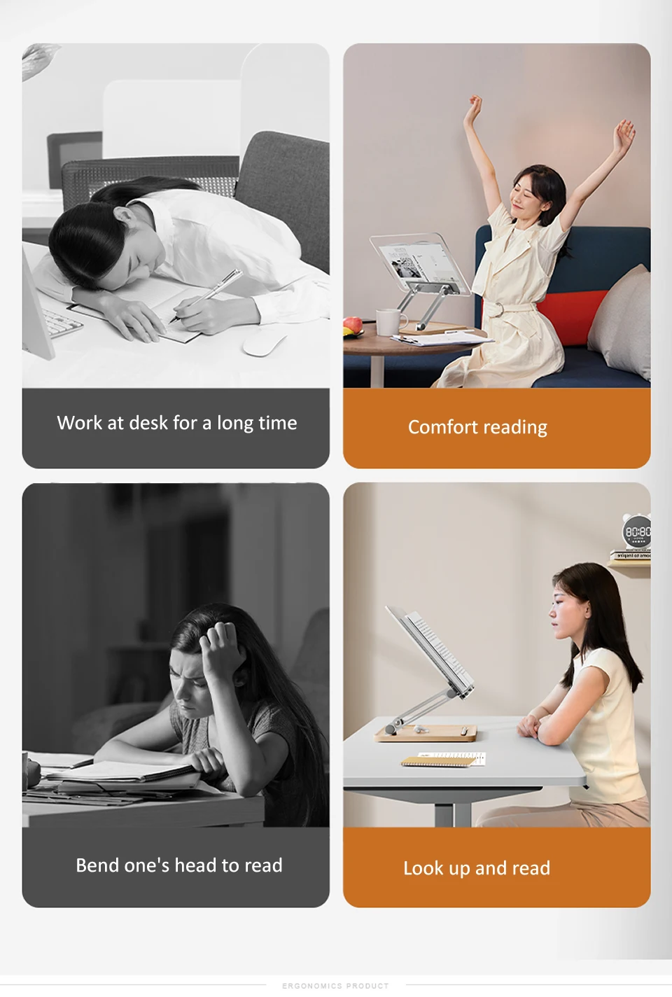 Características: Almacenamiento plegable, ajuste libre de ángulos alto y bajo, lectura hacia arriba
