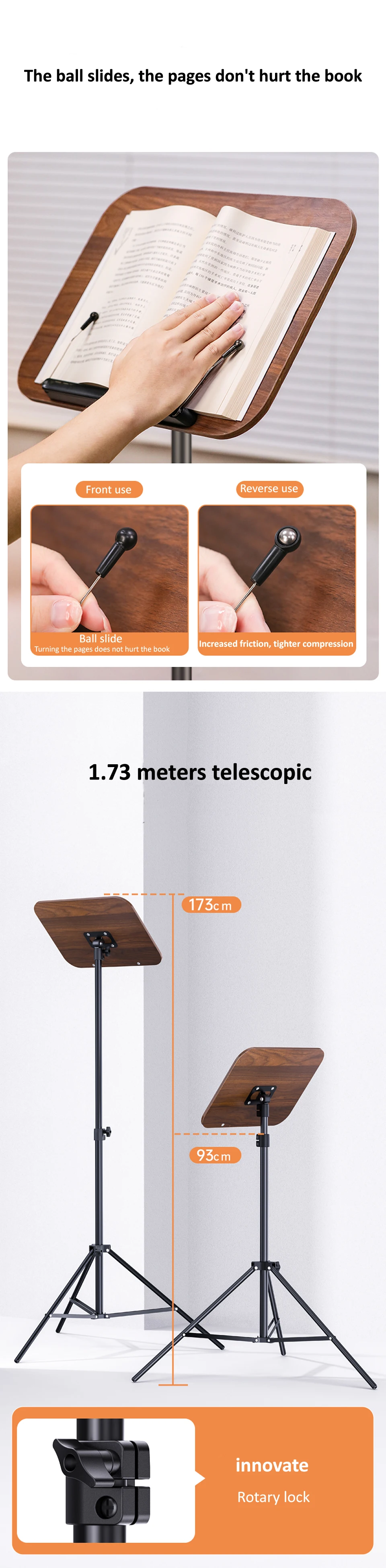Soporte de lectura de suelo Estantería telescópica de elevación Soporte de partituras Clip de libro de imágenes