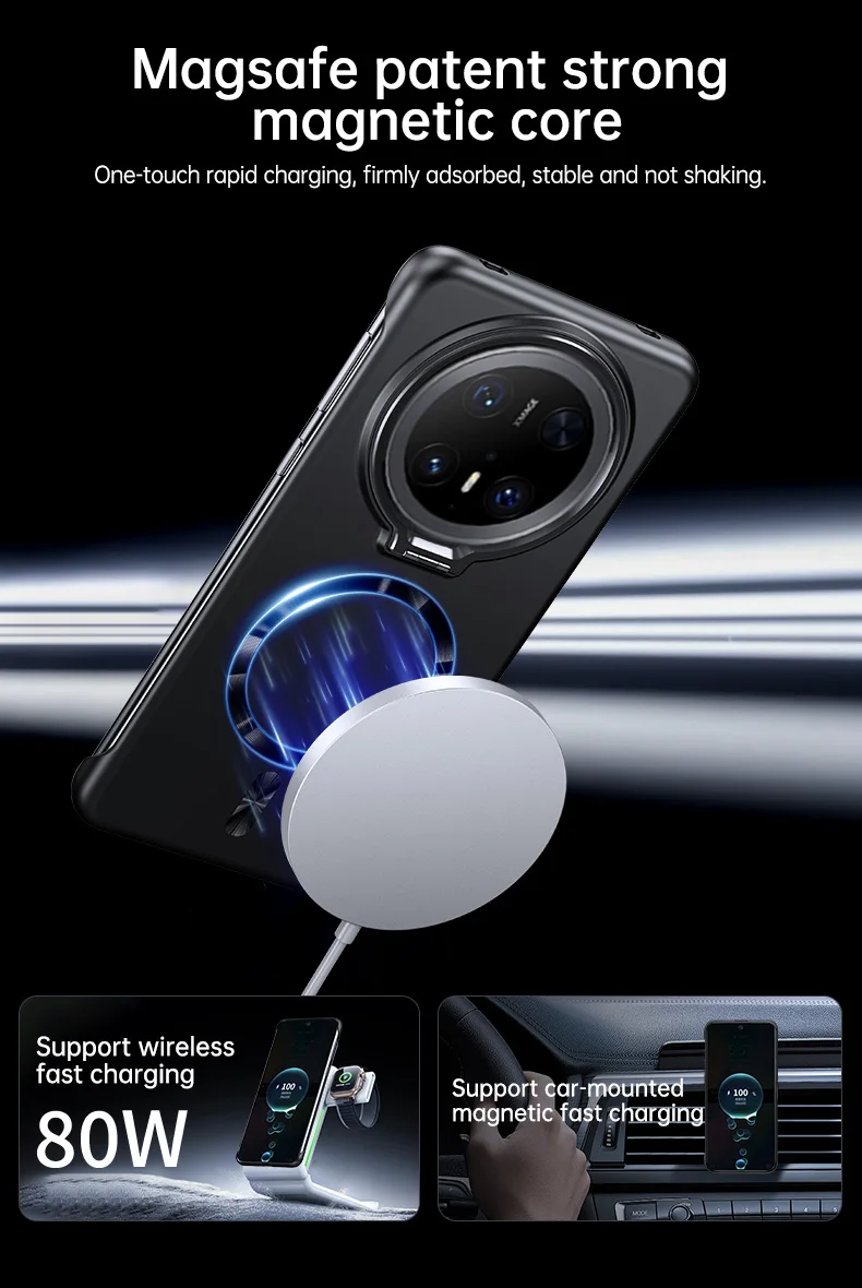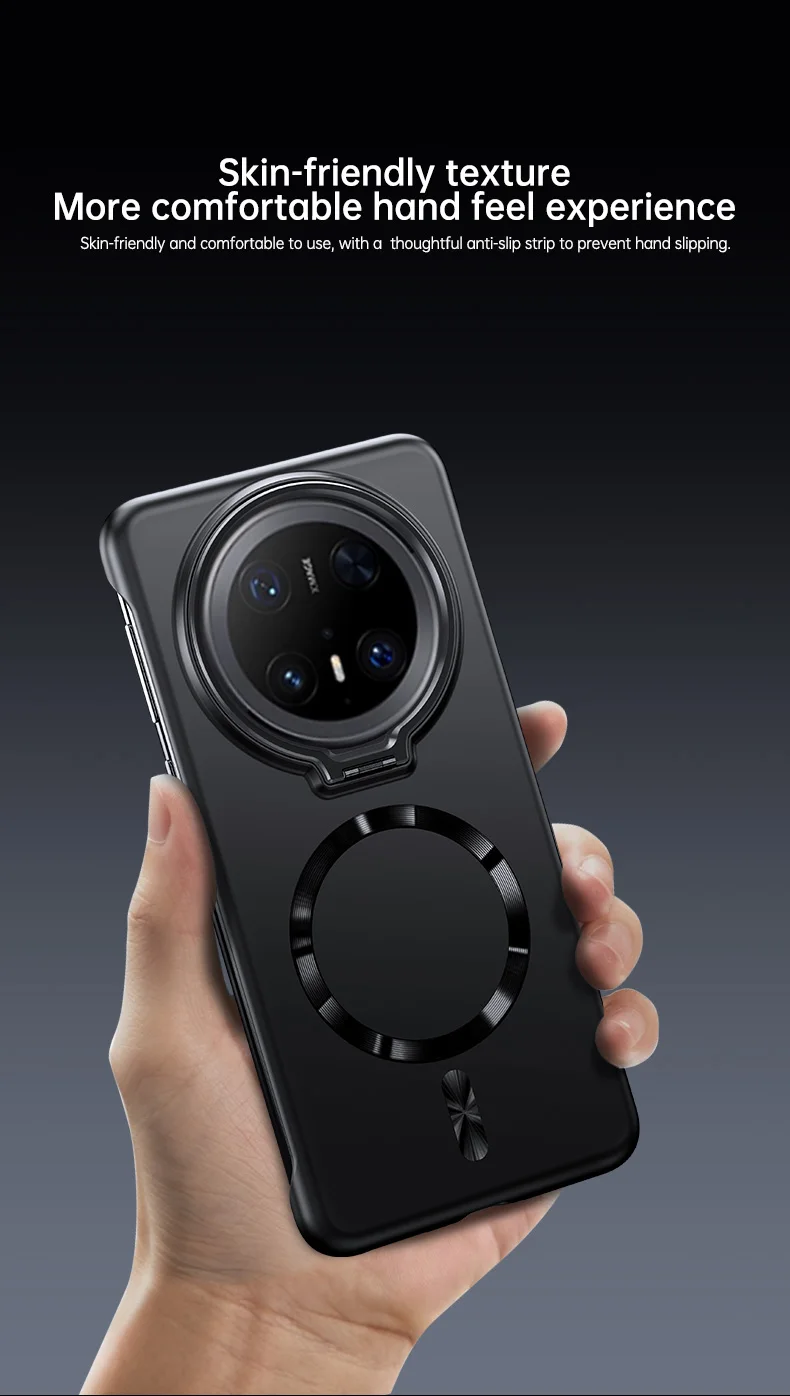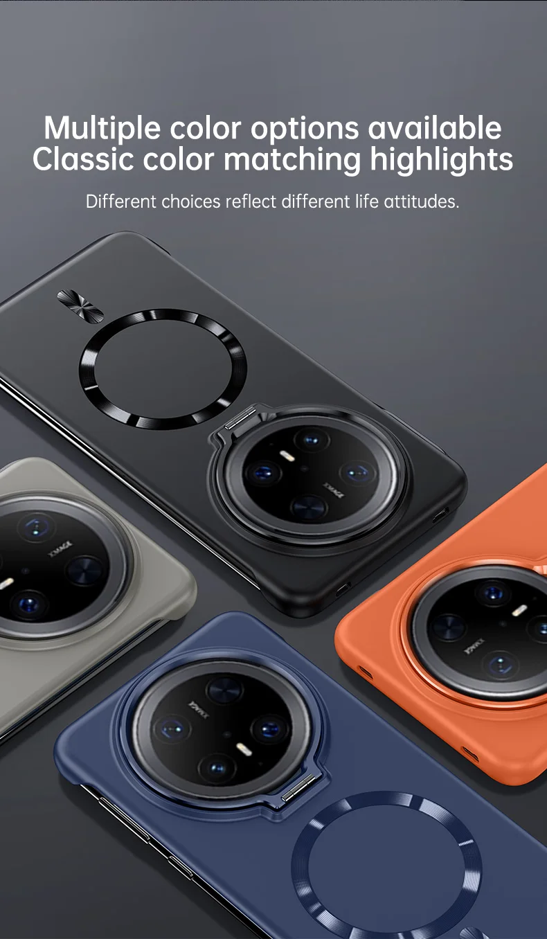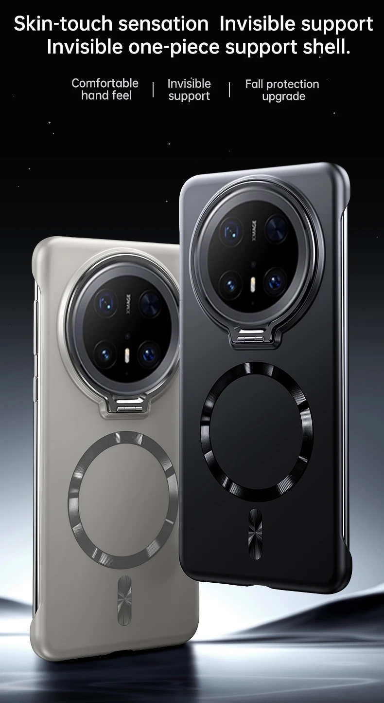 Soporte de lente de Metal, funda magnética sin marco para Huawei Mate 70 60 Pro Plus, carga inalámbrica, cubierta de PC de piel mate ultrafina sólida