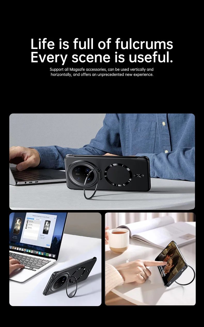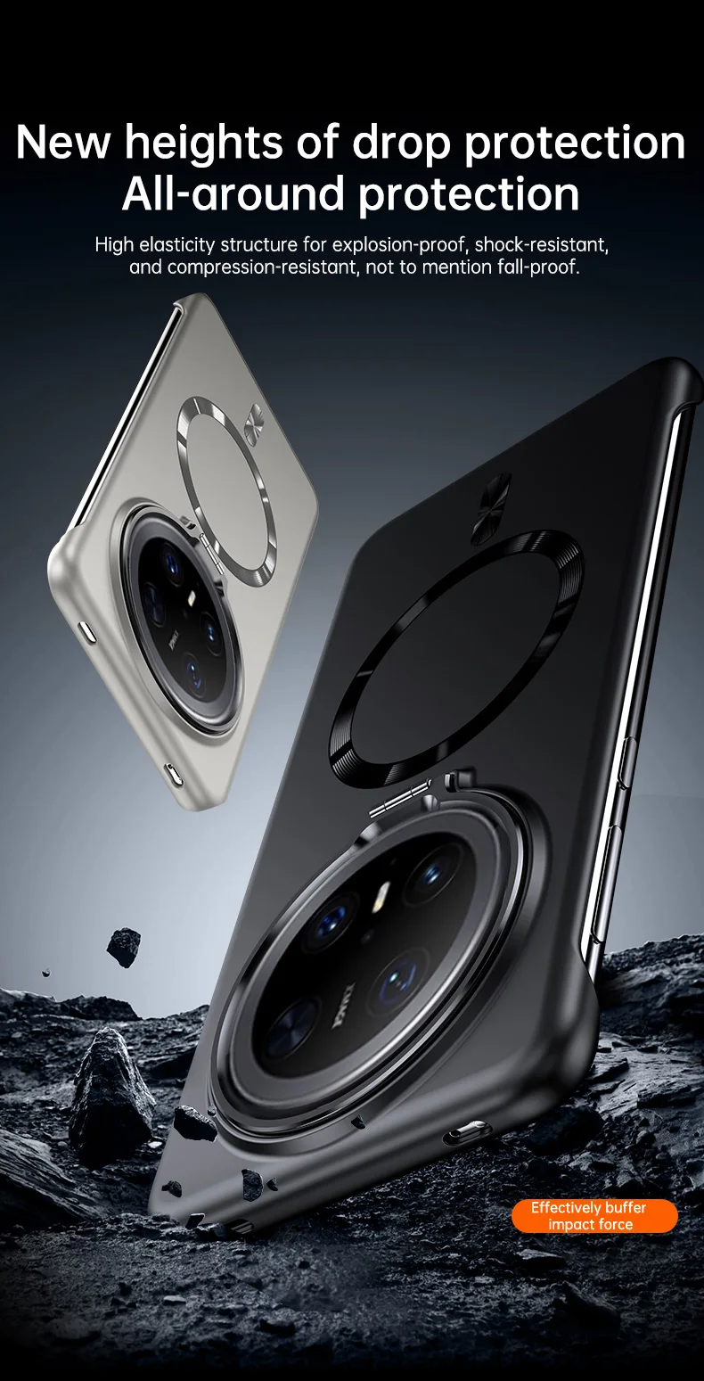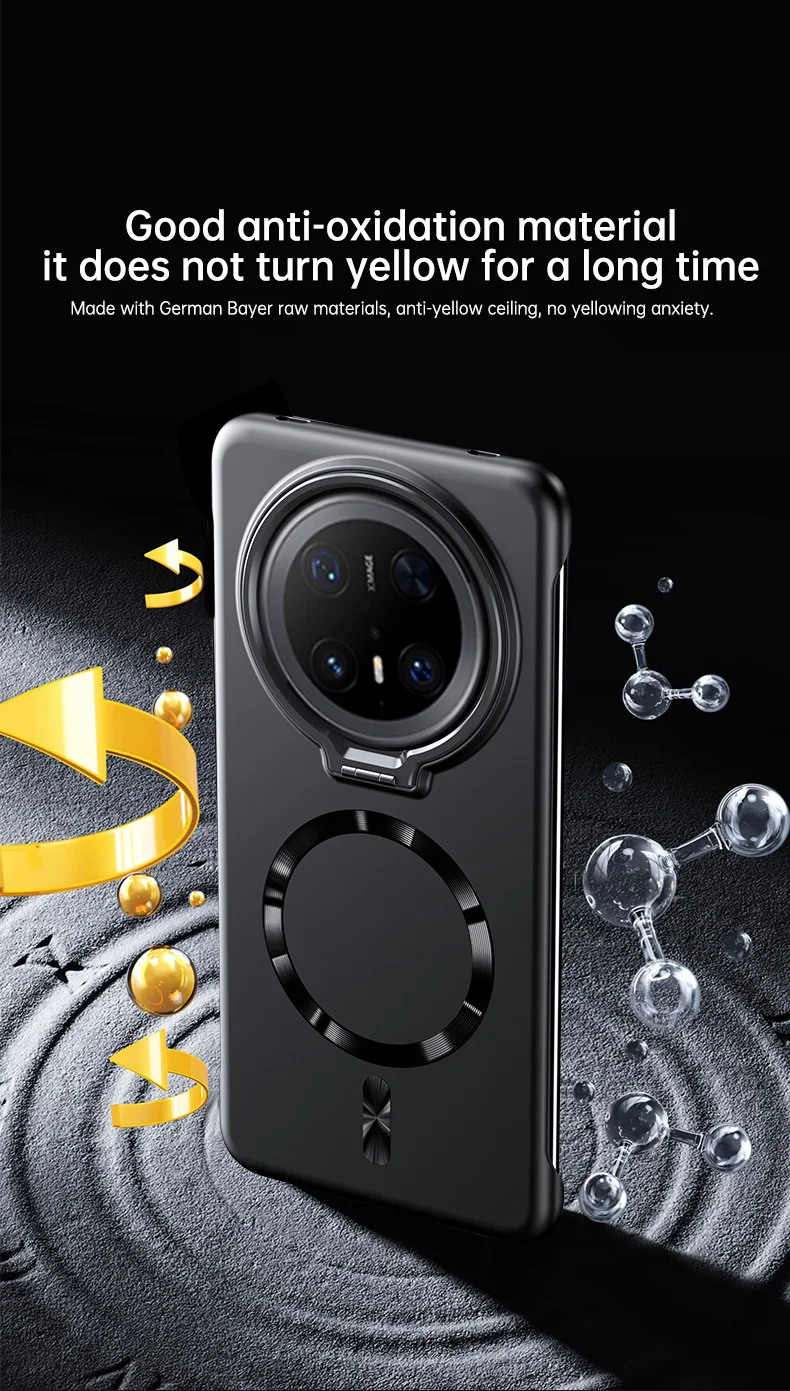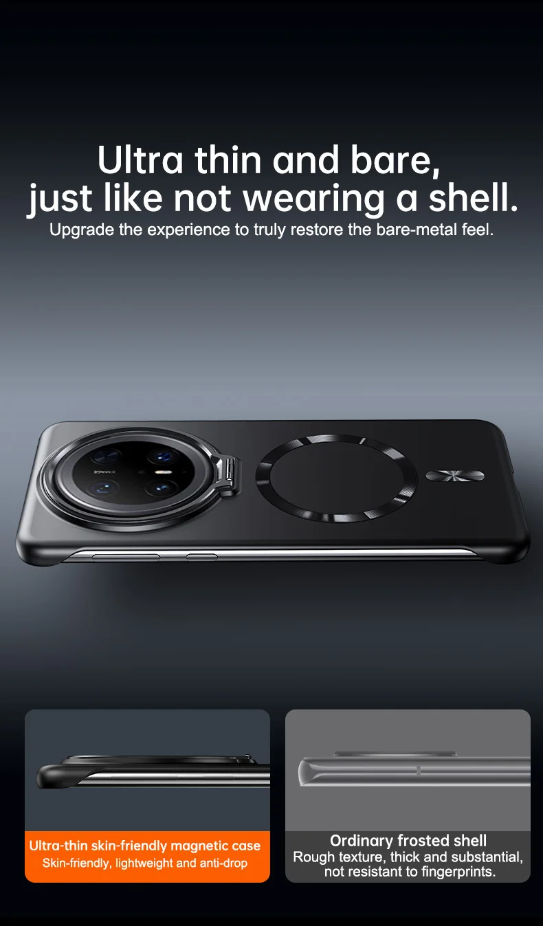 Soporte de lente de Metal, funda magnética sin marco para Huawei Mate 70 60 Pro Plus, carga inalámbrica, cubierta de PC de piel mate ultrafina sólida
