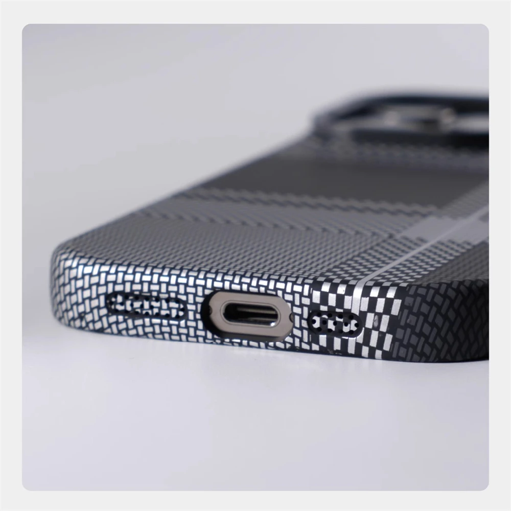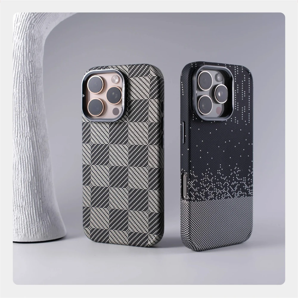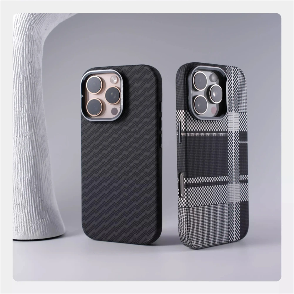 Soporte de lente de Metal de invisibilidad, funda magnética con patrón de fibra de carbono para iPhone 16 Pro Max 15 14 13, cubierta de carga inalámbrica MagSafe