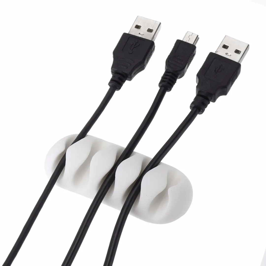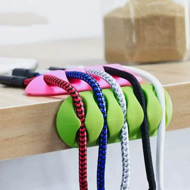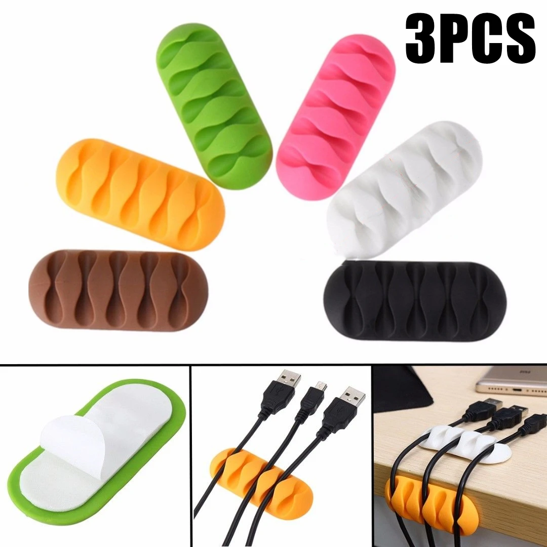 Comprar Soporte de línea de teléfono para oficina, Enrollador para ratón, soporte de auriculares, Clips flexibles de gestión de cables, organizador de cables de plástico de escritorio, 3 uds.