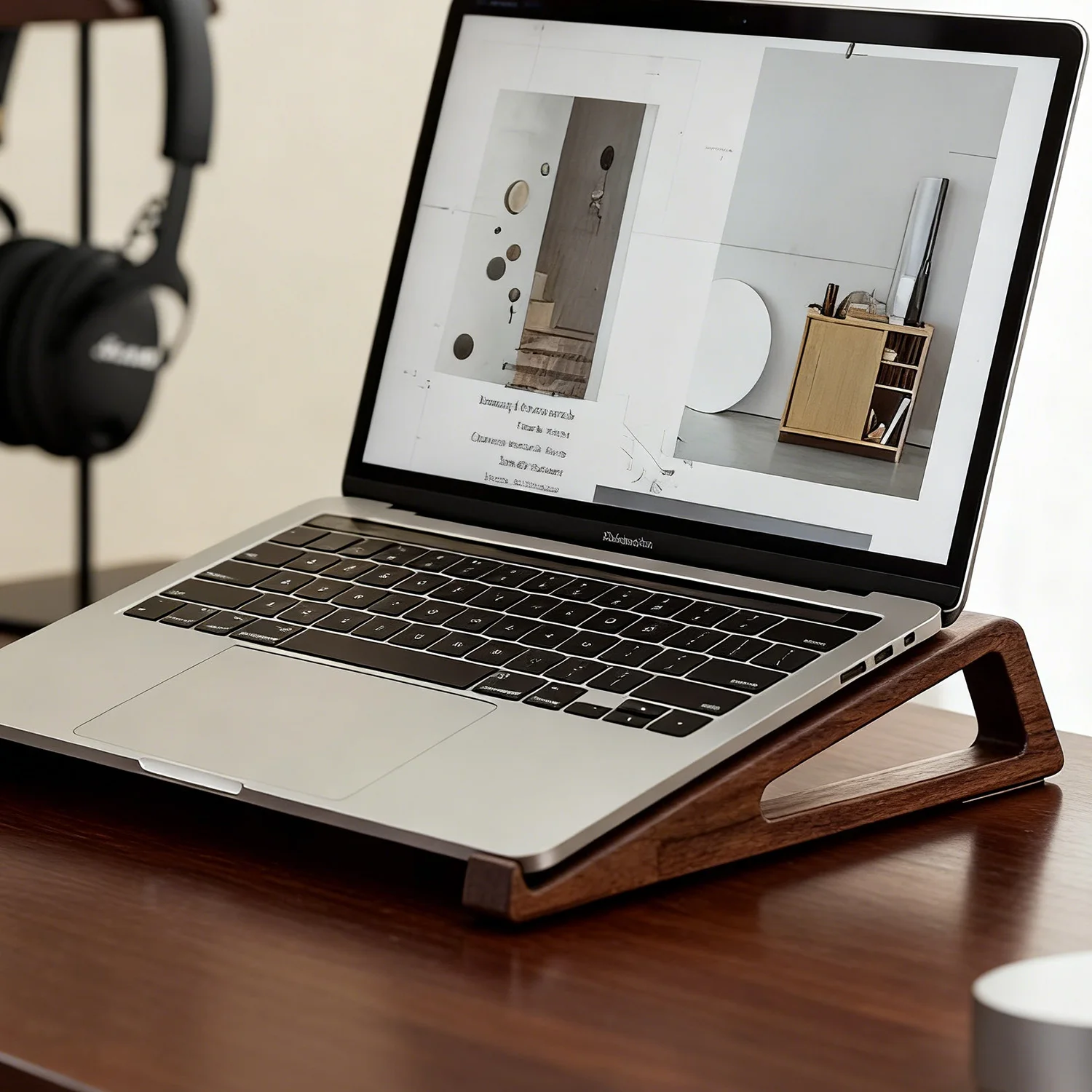 【Diseño ergonómico】Este soporte de madera de 24,8*4,5 cm eleva la pantalla de su computadora portátil, aliviando eficazmente la fatiga del cuello y mejorando la postura durante largas sesiones de trabajo o juego.