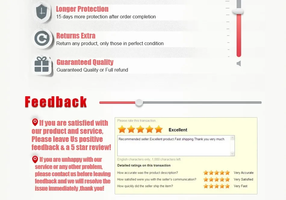 1. Envío rápido 1-3 días + respuesta oportuna + actitud positiva.