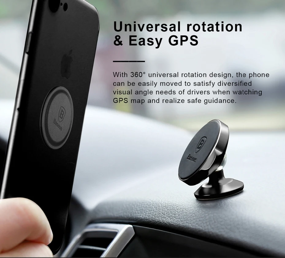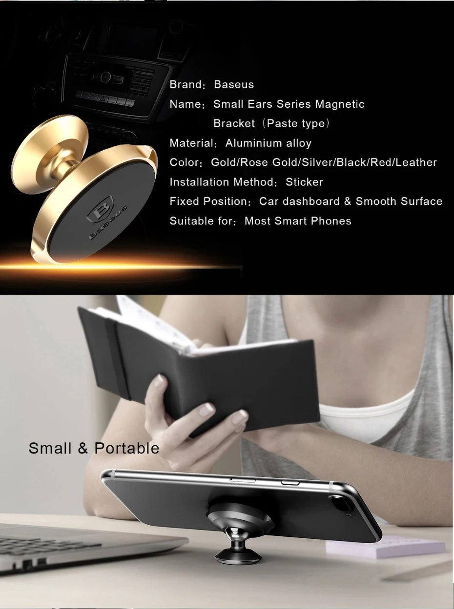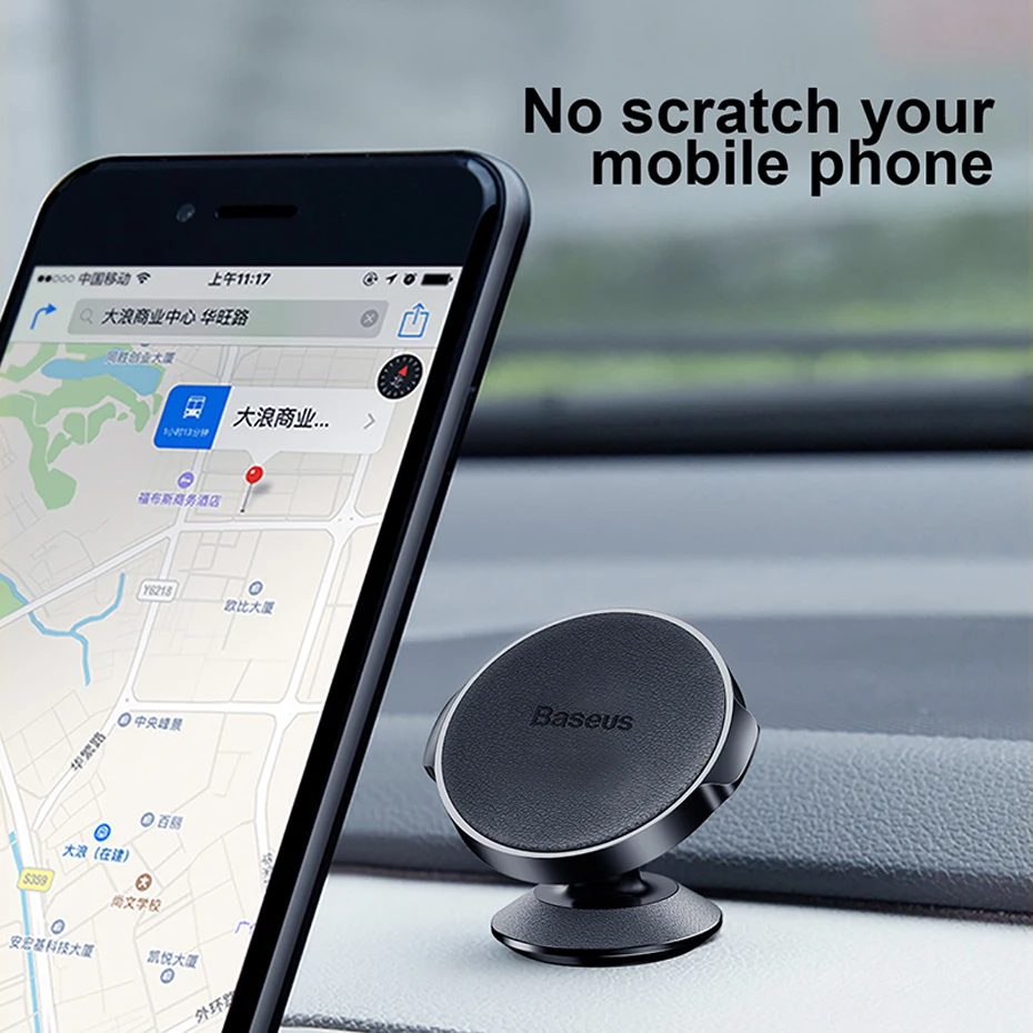 Soporte magnético Baseus para teléfono de coche para iPhone Xiaomi Huawei soporte de teléfono de Metal de rotación completa pegatina soporte Universal para coche