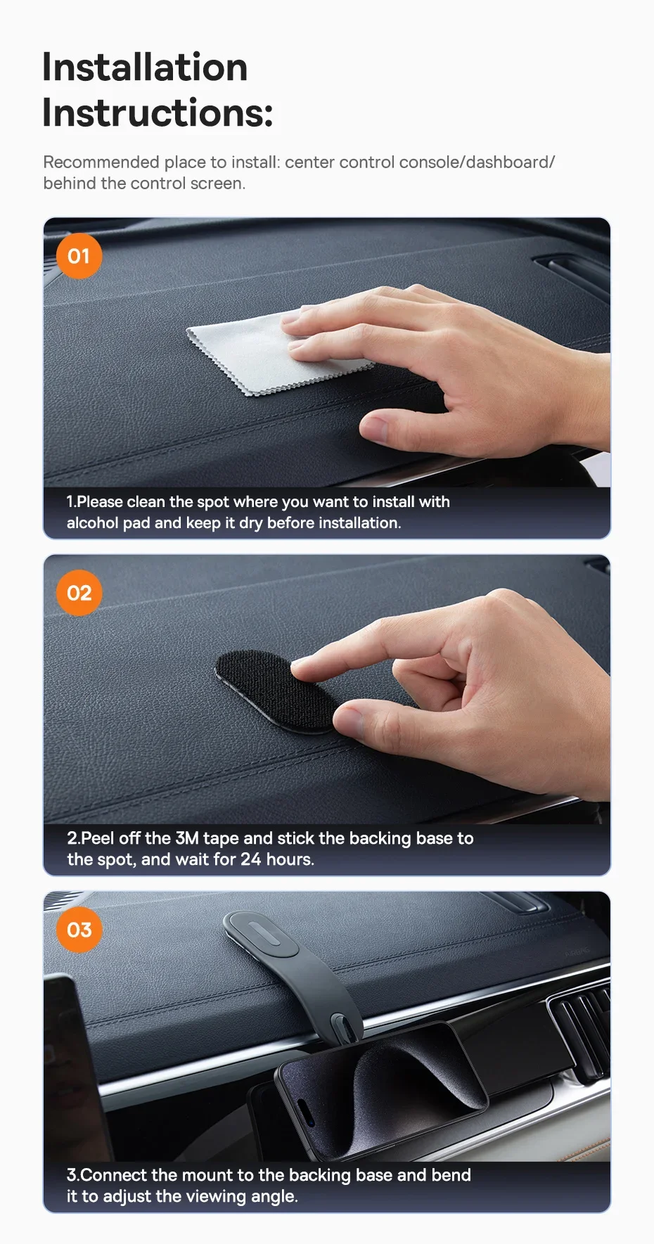 2. Retire la cinta 3M y pegue la base trasera en el lugar y espere 24 horas.
