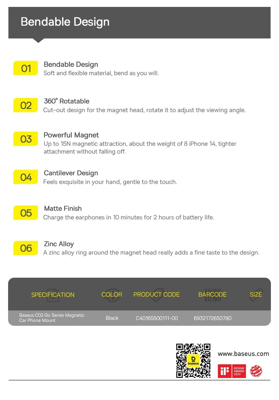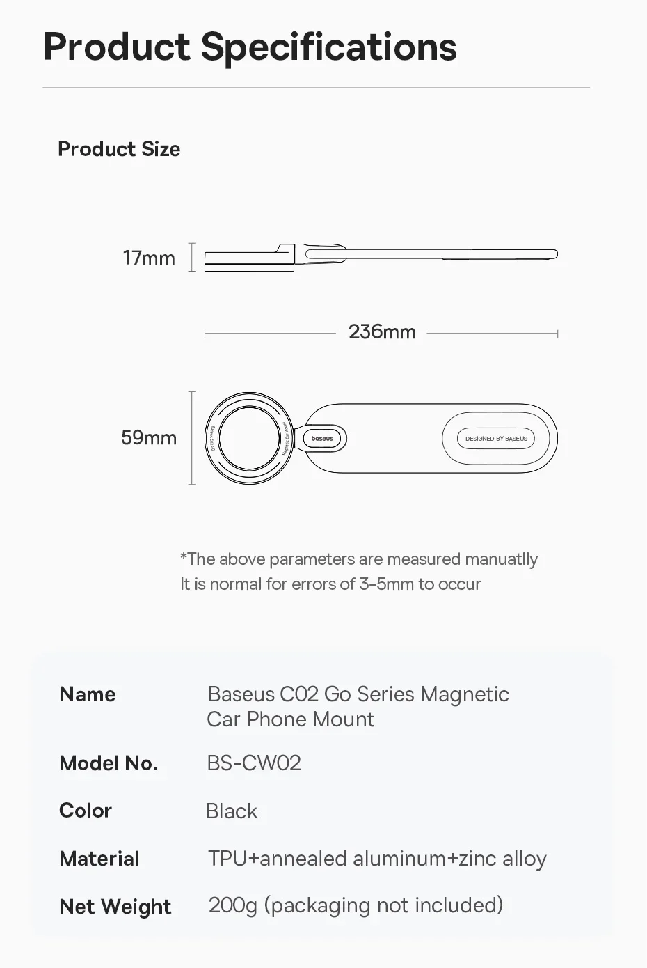 Soporte magnético para teléfono de coche Baseus C02 Go Series