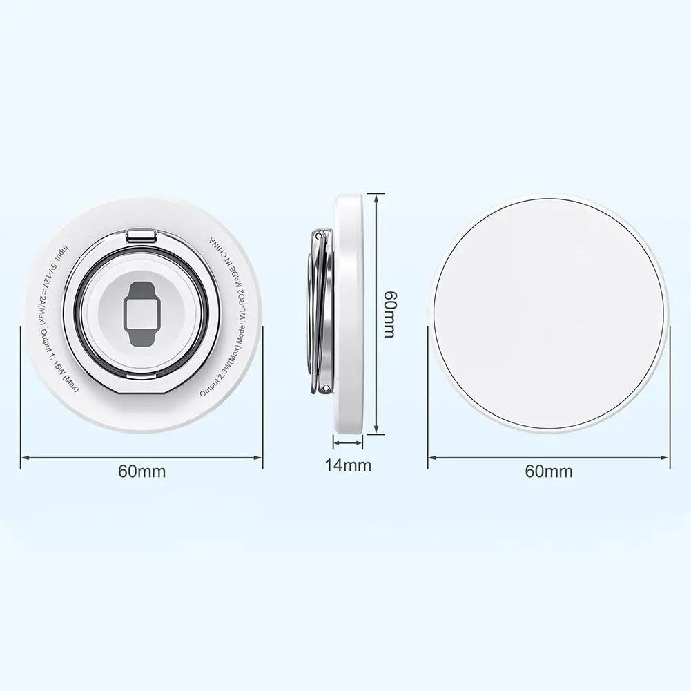 2.Tecnología magnética: el fuerte diseño del imán garantiza que el teléfono móvil pueda alinear de forma rápida y precisa la bobina de carga inalámbrica y fijarla firmemente en el soporte.El producto cumple con los dispositivos estándar QI, para la serie magsafe; para la serie de carga inalámbrica airpods; para las series iWatch SE, Ultra, de 4 a 9, para iPhone 12 y modelos más nuevos u otros dispositivos que tengan la tecnología MagSafe.