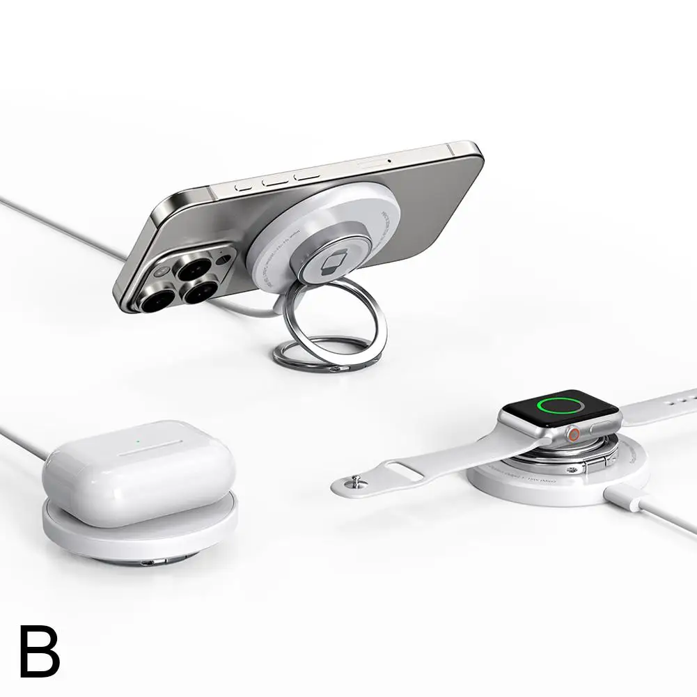 Nombre del producto: soporte magnético para teléfono móvil con carga inalámbrica 3 en 1