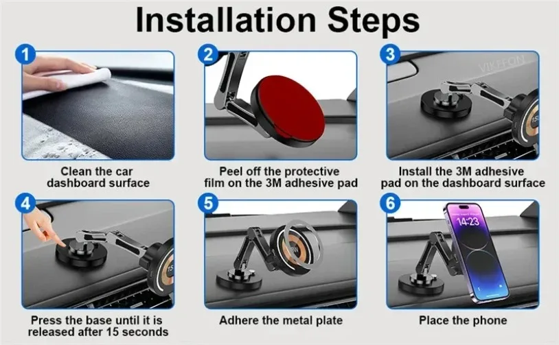 Montaje con una sola mano:Entre y sal sin detenerse para montar su dispositivo.El soporte magnético le permite colocar su dispositivo en su lugar sin ralentizarlo.