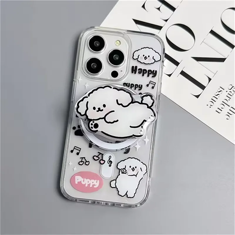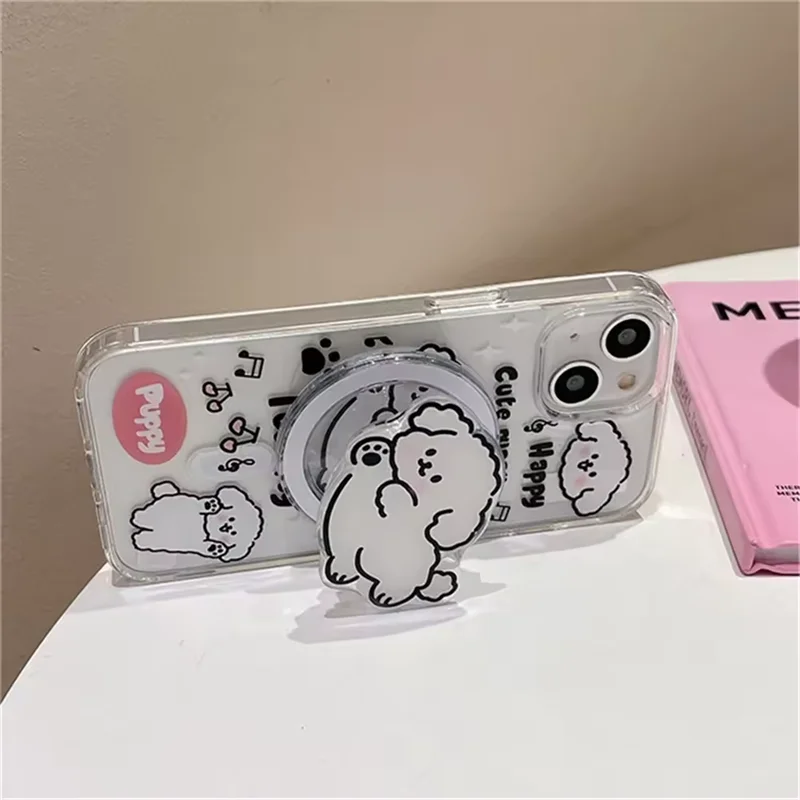 Soporte magnético coreano para cachorros de dibujos animados, soporte para teléfono con agarre Tok Griptok para iPhone 16 15 14 para funda Magsafe Smart Tok