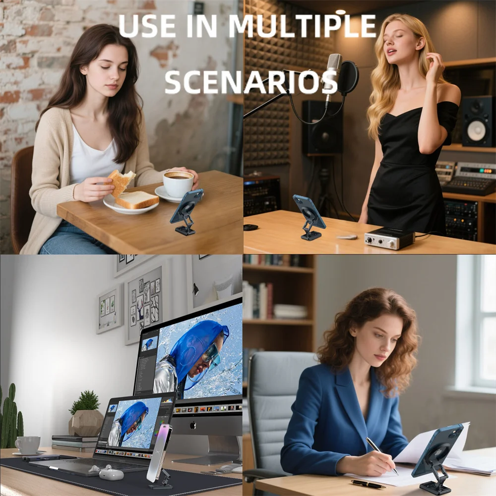 Ya sea que esté capturando videos, asistiendo a reuniones virtuales o disfrutando de la visualización con manos libres, este soporte para teléfono se adapta a todas sus necesidades.