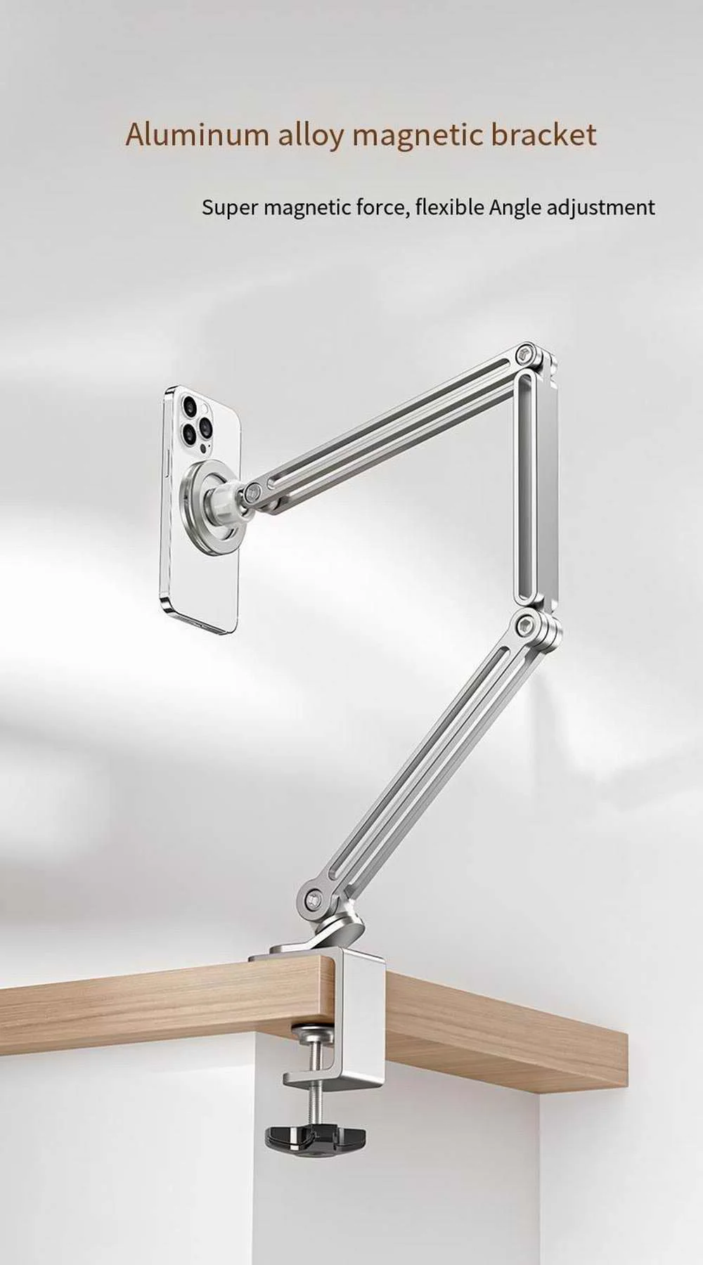 ¡Eleve su espacio de trabajo con nuestro nuevo soporte magnético para teléfono! Este soporte para teléfono Magsafe ofrece un brazo largo ajustable para la visualización de manos libres de su iPad Pro, Mini, Xiaomi o Tab. Mantenga el control y domine sus tareas con facilidad.