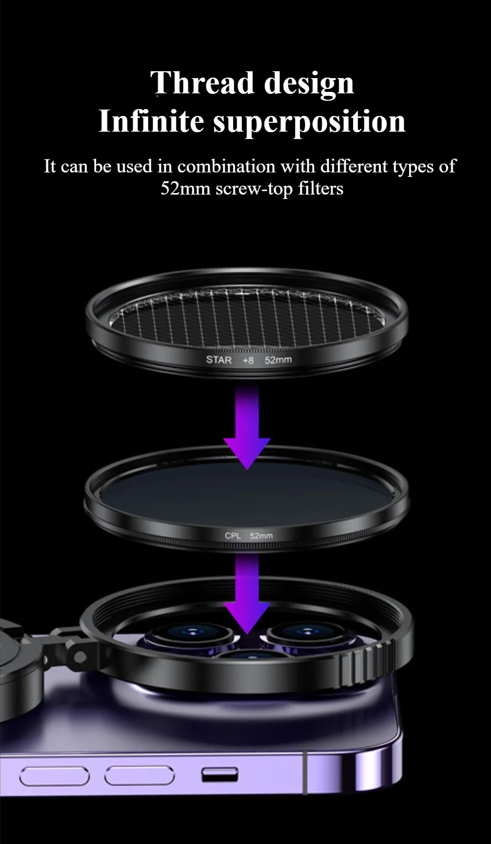 Comprar Soporte magnético de filtro polarizador CPL de 52mm elimina la reflejo para iPhone 16 15 Pro Max Andriod Smartphone para soporte de filtro Vlog
