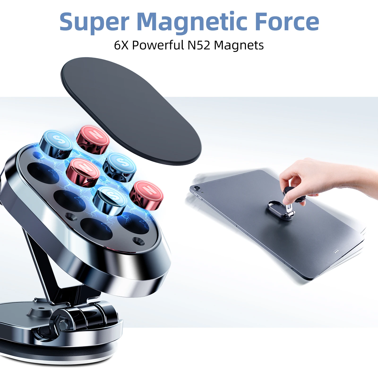 Soporte magnético fuerte para teléfono de coche, soporte giratorio para teléfono inteligente, soporte plegable mejorado para iPhone, Samsung, Xiaomi, LG